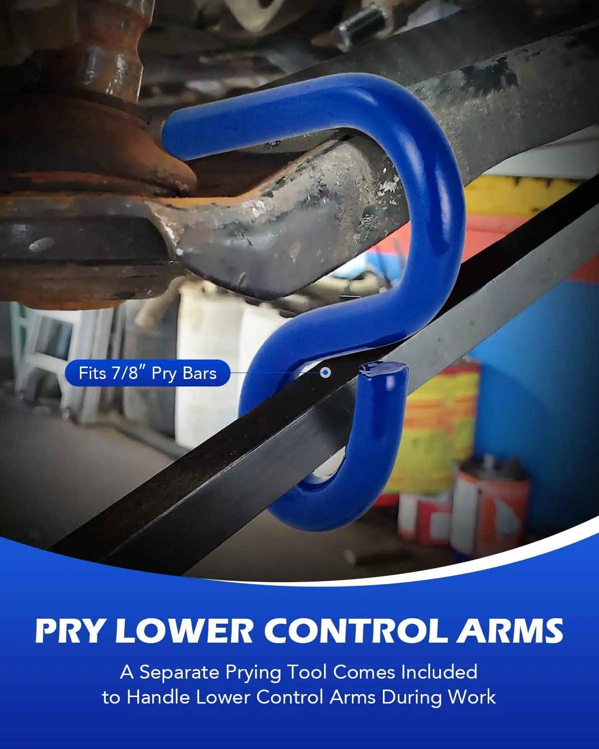 Pryer Included :This Orion Motor Tech ball joint removal tool kit includes the lower control arm prying tool necessary to get your work done; it fits any 7/8" pry bar to keep this project a one person job