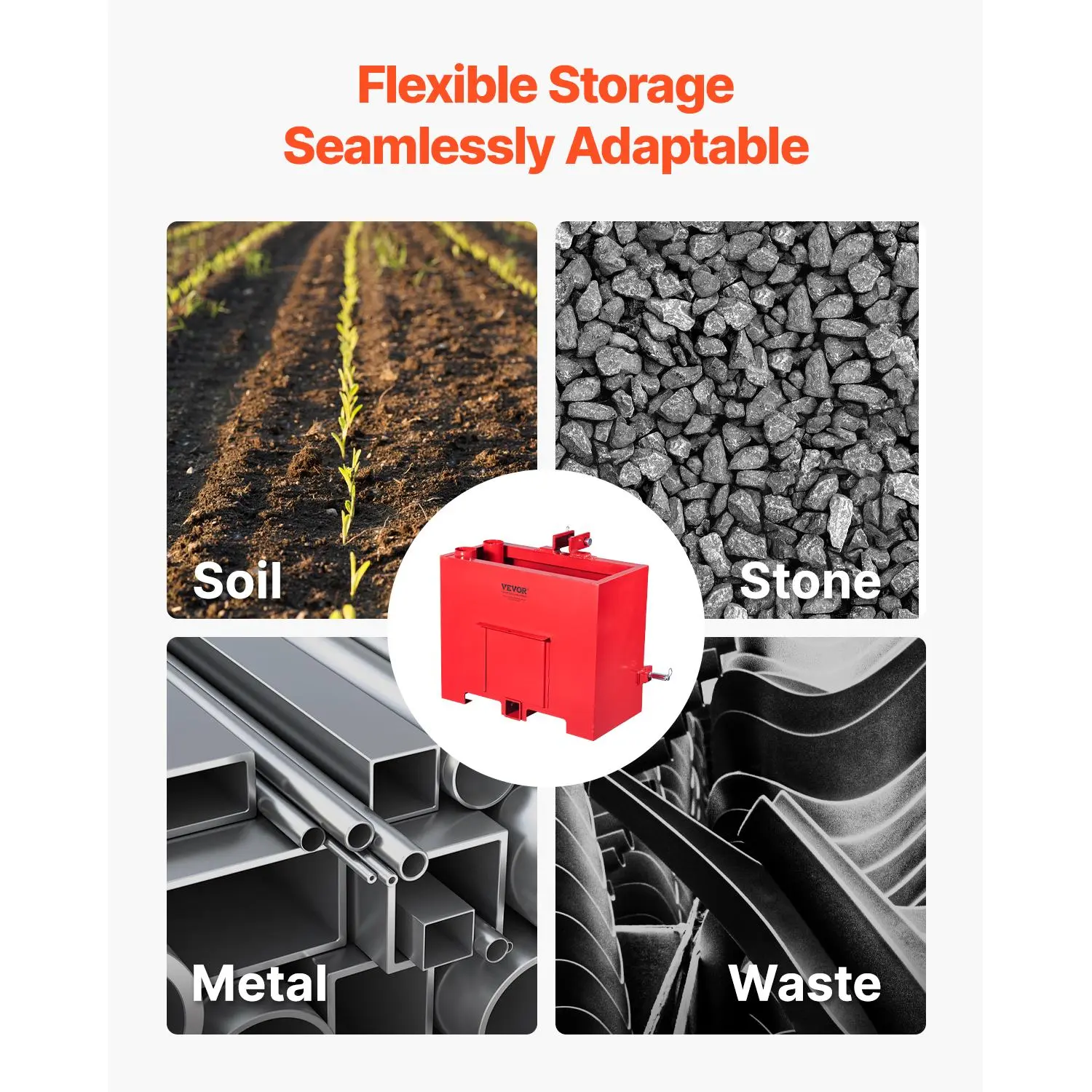 ·Compatibility and Versatility: This tractor ballast weight is compatible with popular brands like Kubota and John Deere, ensuring wide adaptability. It serves not only as an efficient ballast box but also as a tool storage box, helping you keep your workspace clean and organized