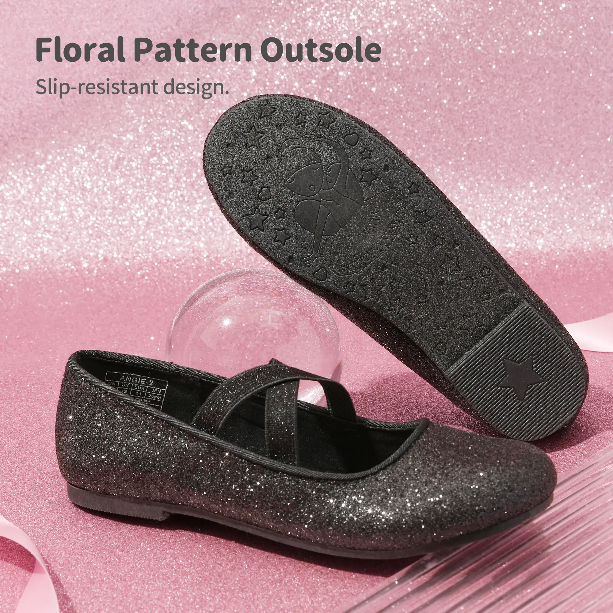 5. DREAM PAIRS KIDS Girl's Elastic Strap Rhinestone Ballerina Flats