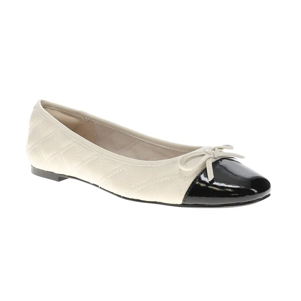 Chic design meets unparalleled comfort in the Sadie Quilted Ballet. This quintessential flat exudes sophistication with its iconic quilted leather upper and sleek patent cap toe, offering a polished look that is perfect for any occasion. The subtle bow detail adds a touch of femininity, while the classic two-tone design ensures timeless style.