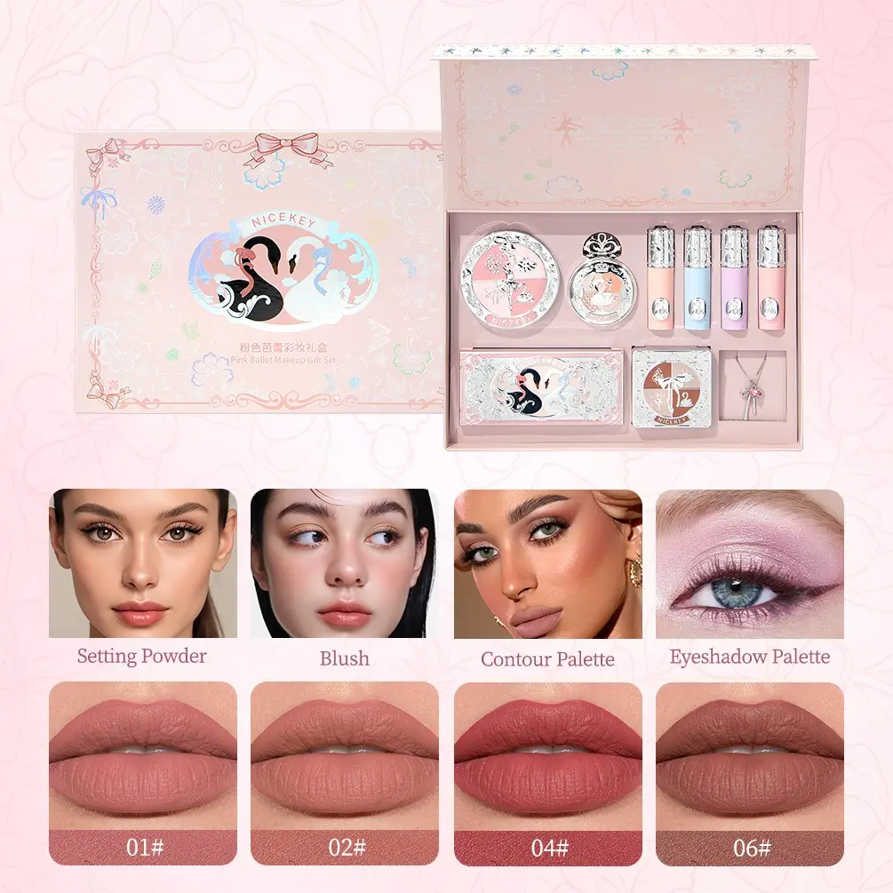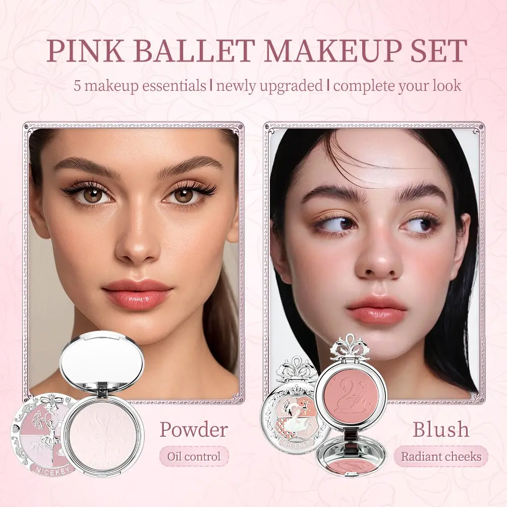 Ballet Makeup Gift Box Set, Lip Balm + Powder + Highlighter + Eyeshadow Palette, Perfect Holiday Gift with Gift Bag & Card, Makeup Kit Set
