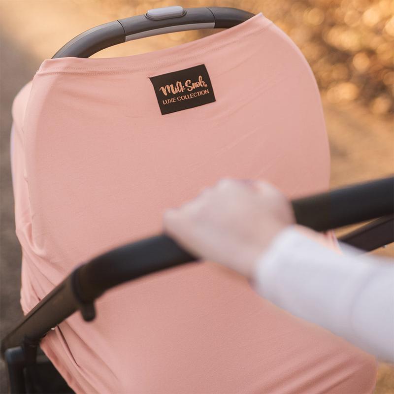 The same 5-in-1 Milk Snob multifunctional cover you already love in an even more luxuriously soft fabric. Use the Luxe Ballet Slipper Cover as a car seat cover, nursing cover, shopping cart cover, high chair cover, infant swing cover, and more. This cover features a sweet baby pink color.