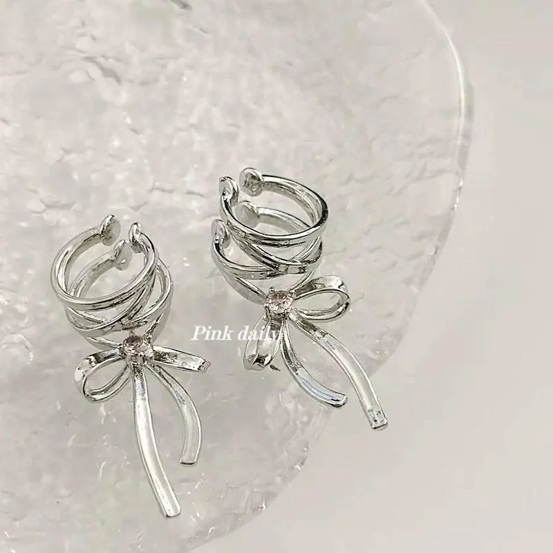 [Exquisite earrings] Sweet ribbon ear clips Cool ballet style ribbon bow earrings Exquisite and versatile texture earrings birthday gift