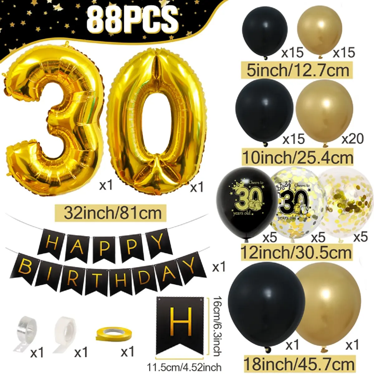 5. 30th 40th Birthday Balloon Garland Banner Set,88pcs Gold Black 30 40 50 Birthday Confetti Balloon Decoration,30 Years Old Happy 30th Birthday Party Banner Decor
