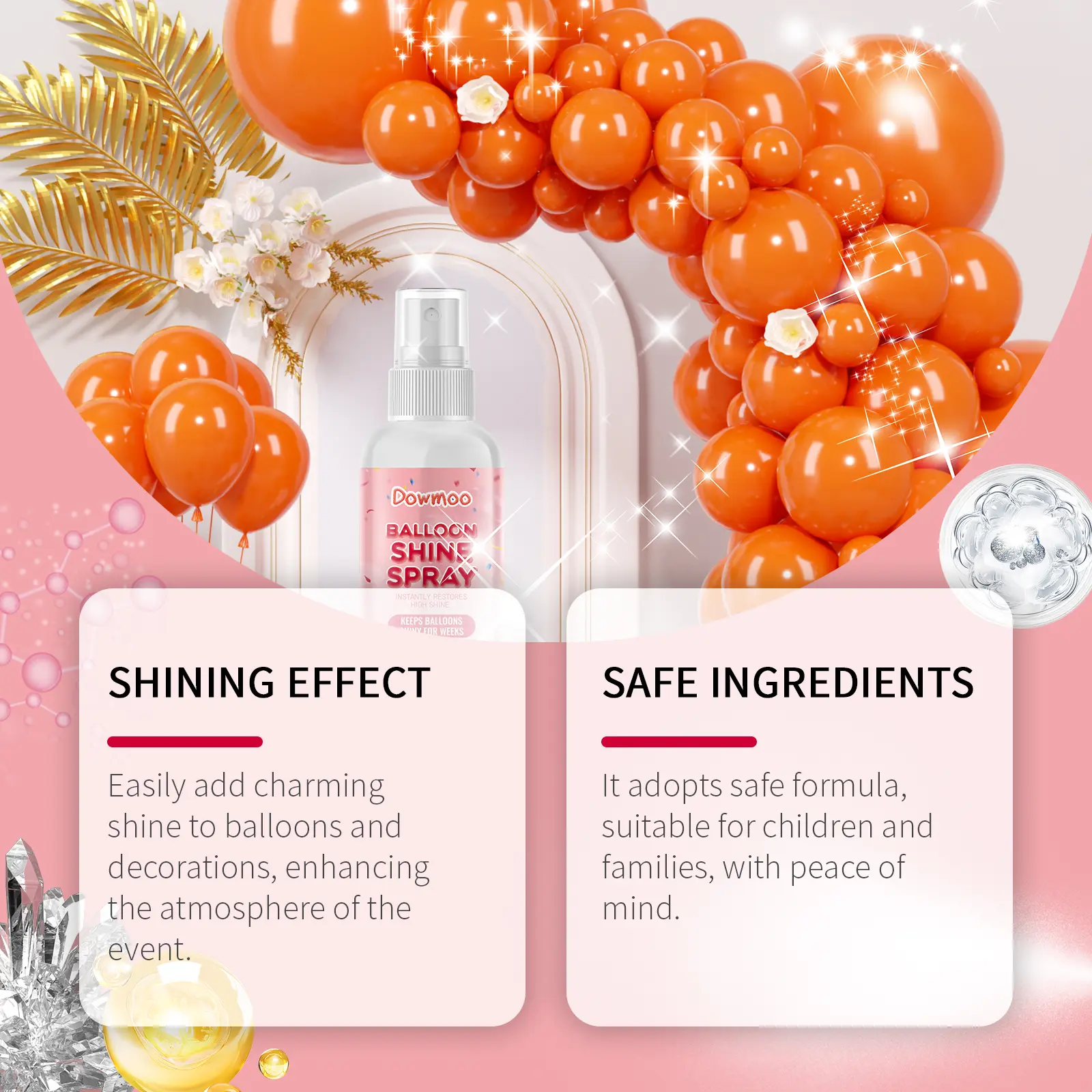 Our Balloon Sparkle spray contains mica, silicate, propylene glycol. It can easily add a glamorous glow to balloons and decorations to enhance the atmosphere of the event. Its use is very simple: just keep it on the surface of the balloon about 5 to 15 centimeters, and evenly spray it. And spray drying fast, easy to use, save waiting time.