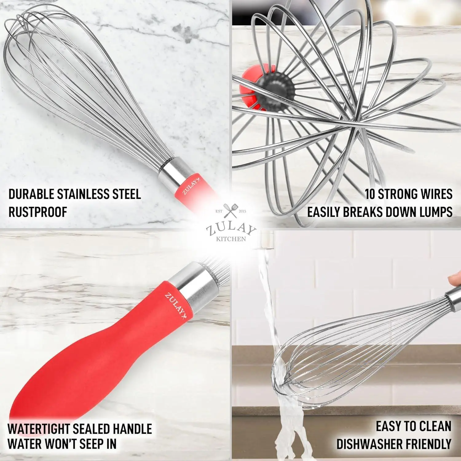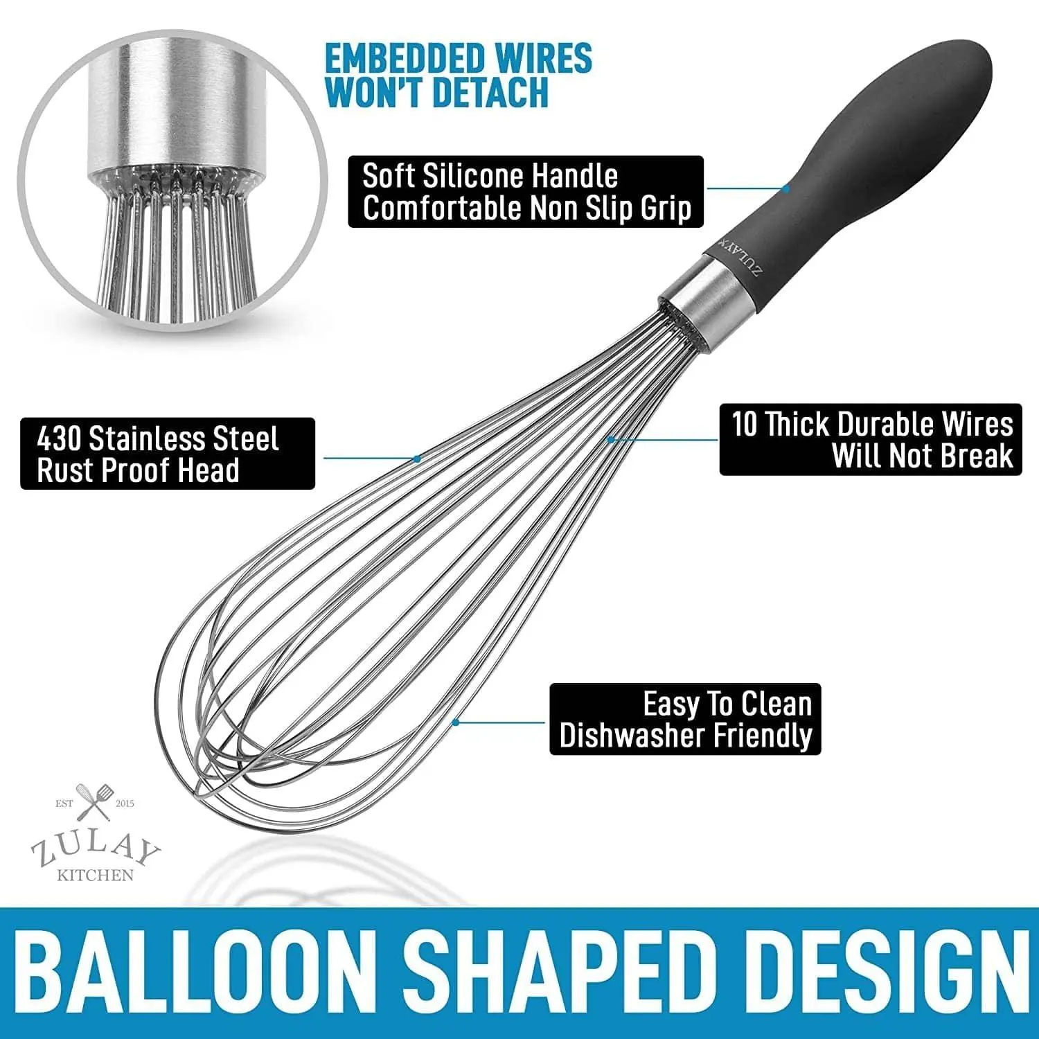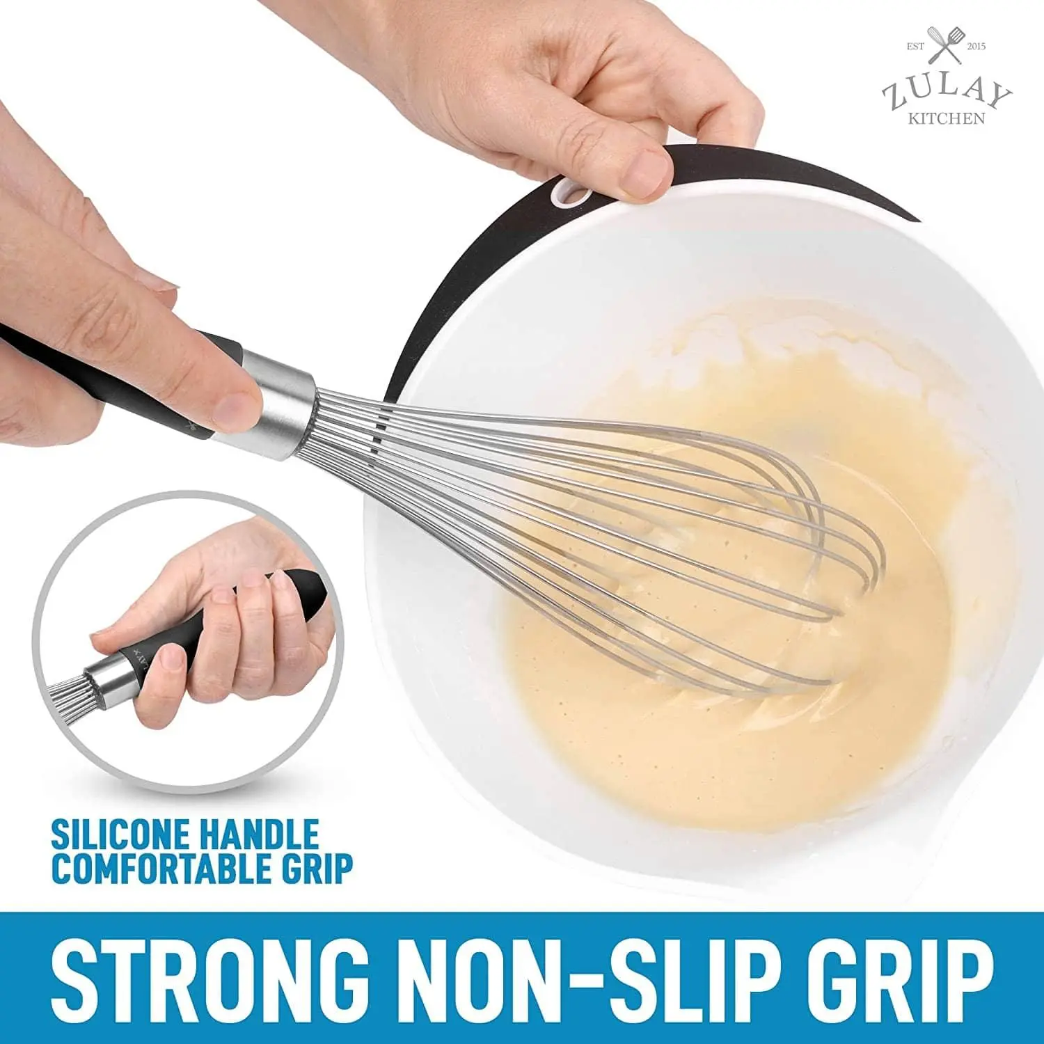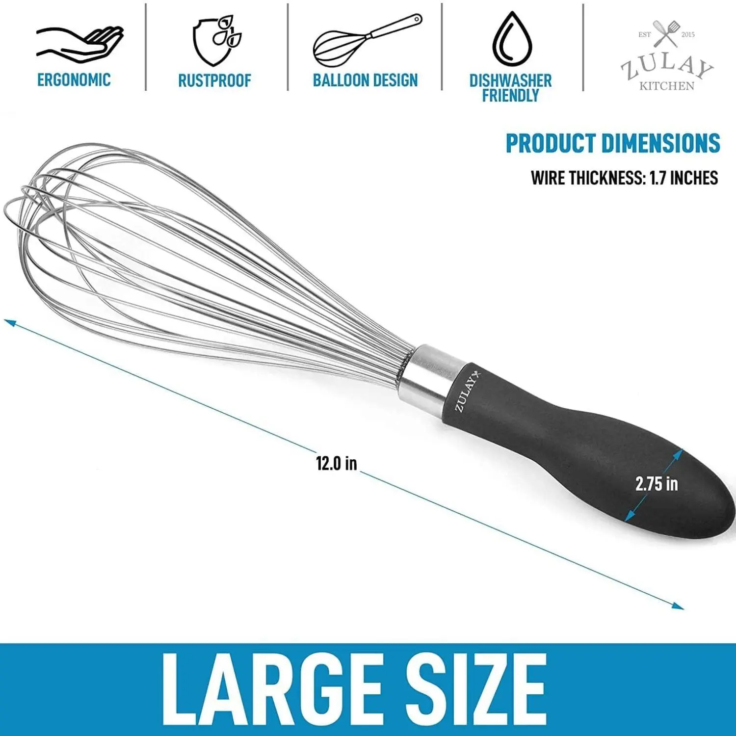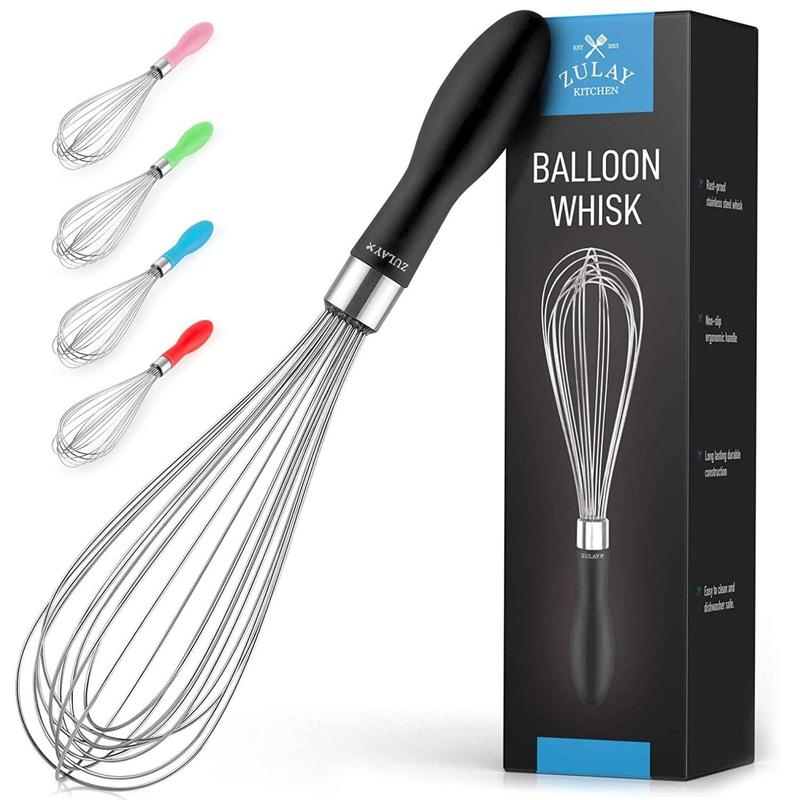 Elevate your cooking with the Zulay Kitchen 12-inch Balloon Whisk—crafted for effortless whipping, mixing, and blending. Built from premium stainless steel, it's a kitchen must-have for every cook.