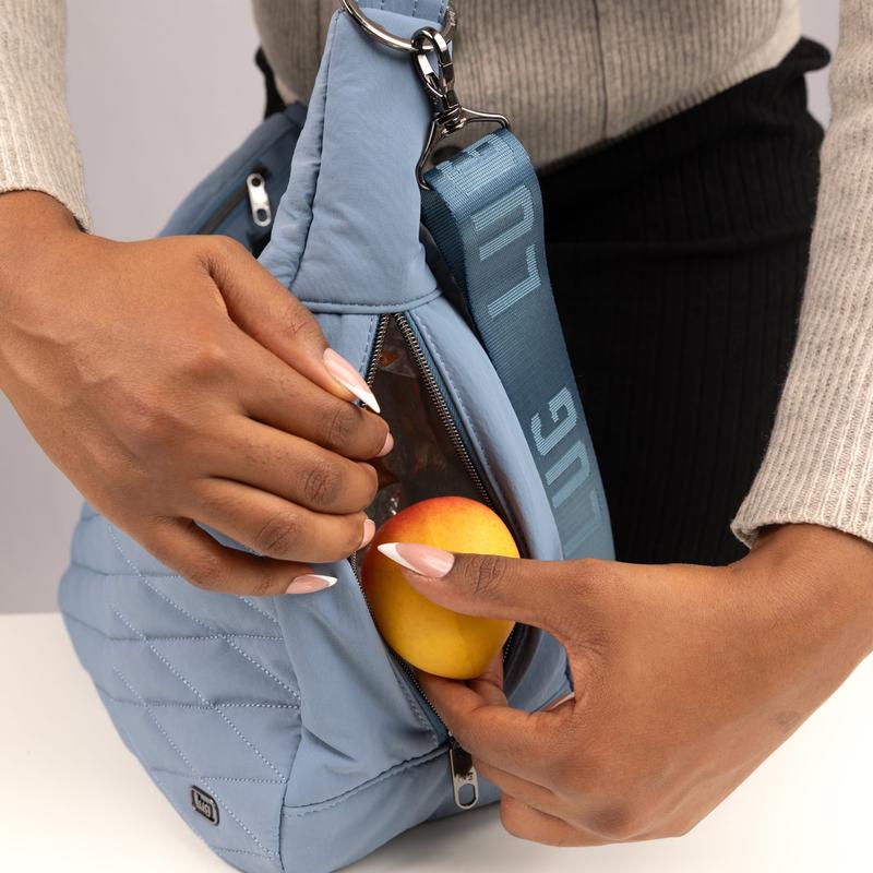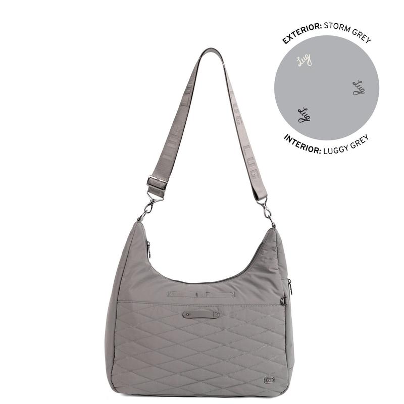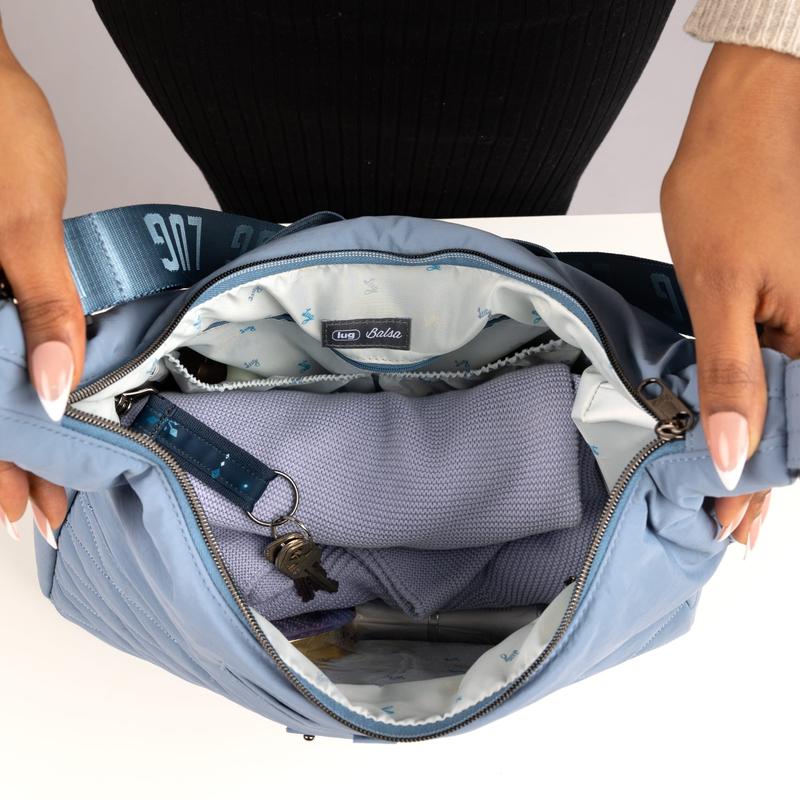 Stay organized on the go with the Balsa CloudGo Hobo Crossbody Bag: a lightweight, soft-touch carry designed for everyday function. Built in our CloudGo fabrication, it features a soft-lined magnetic phone pocket, a convenient trolley sleeve for travel, a side zipper pocket, and multiple D-rings for attaching charms or accessories. Inside, the Balsa delivers signature Lug organization with cargo pockets, pen holders, a clearview zipper pocket, a privacy pocket, and even an insulated pocket to keep small items cool. With its spacious hobo shape and smart pocket placement, this versatile bag makes it easy to carry everything you need, comfortably, securely, and in true Lug style.