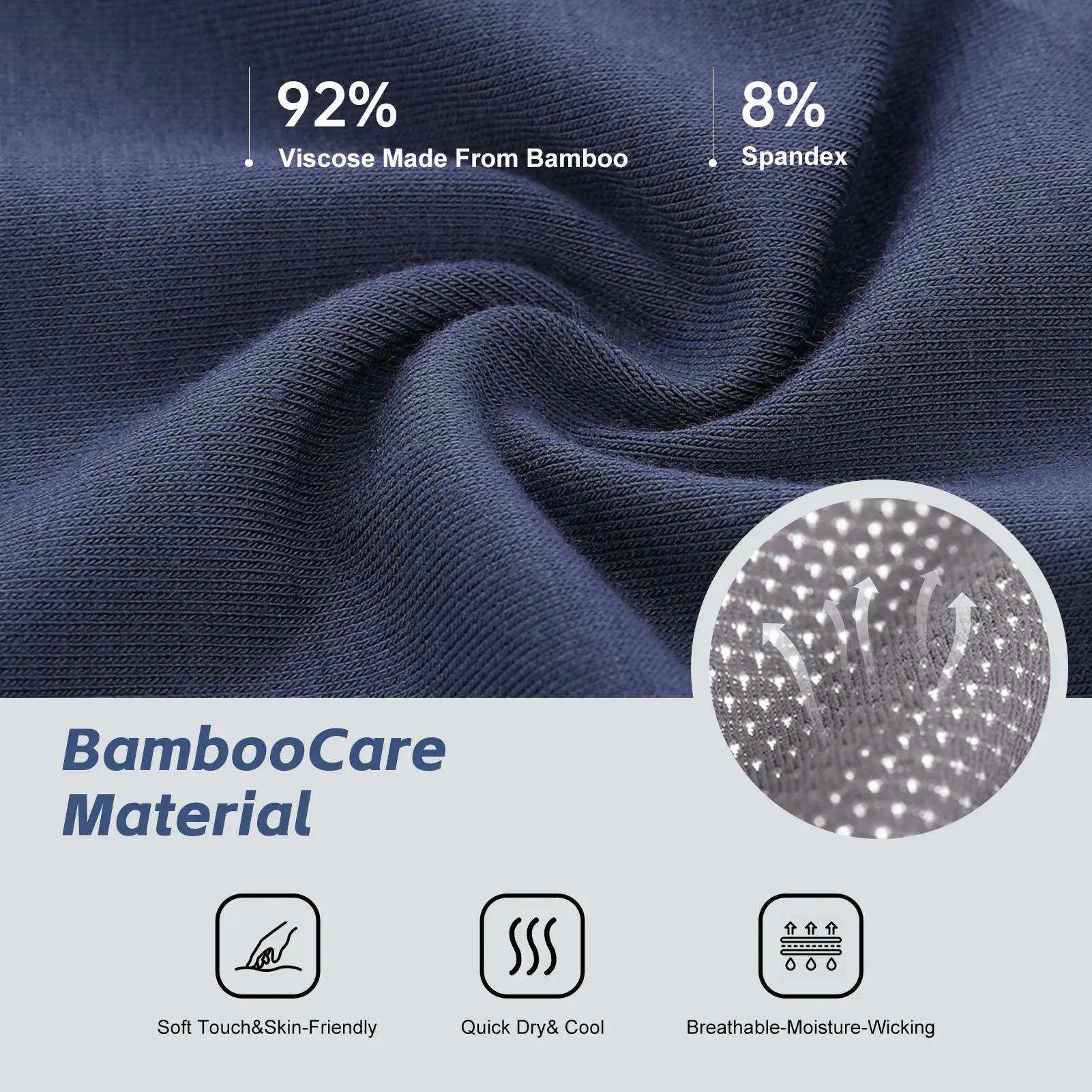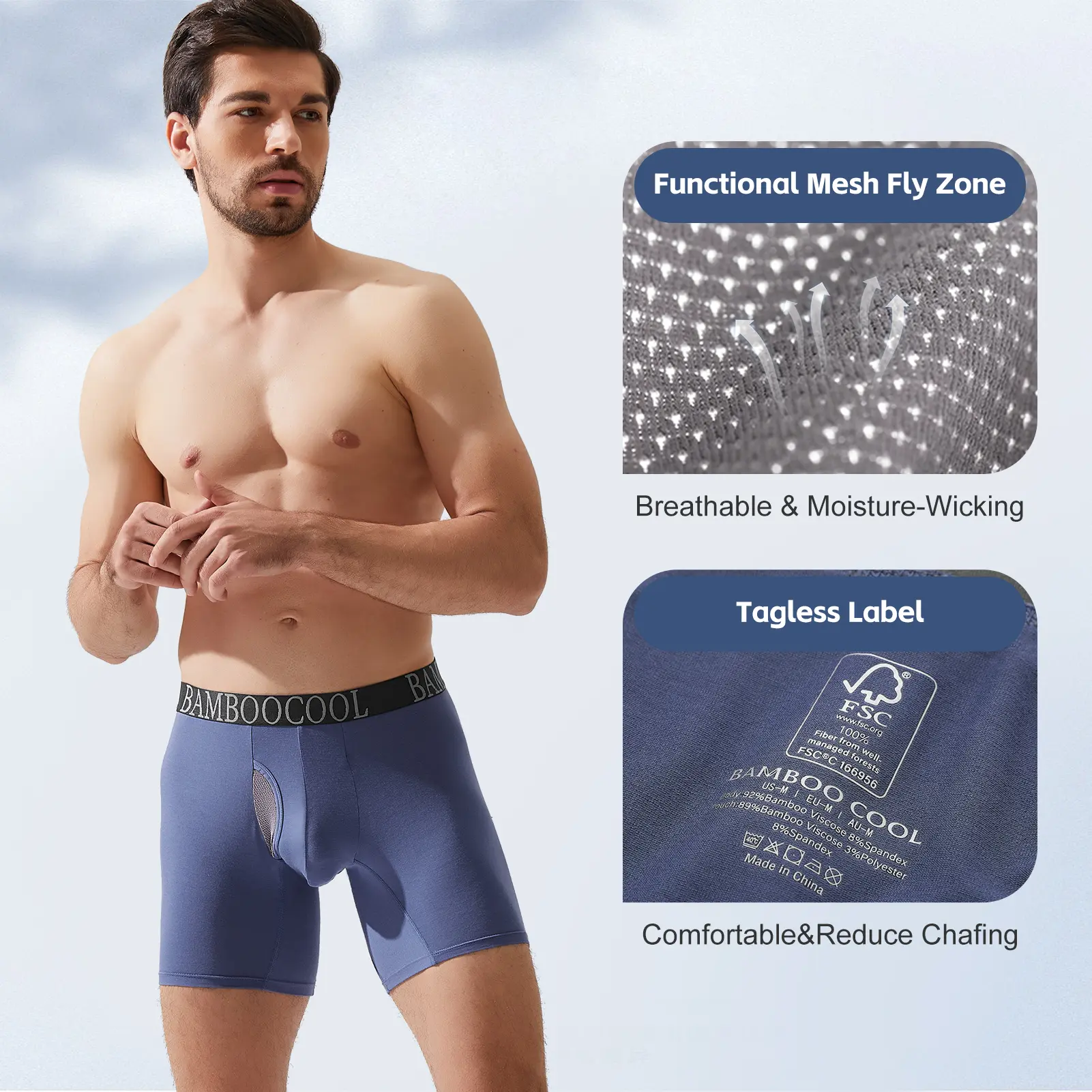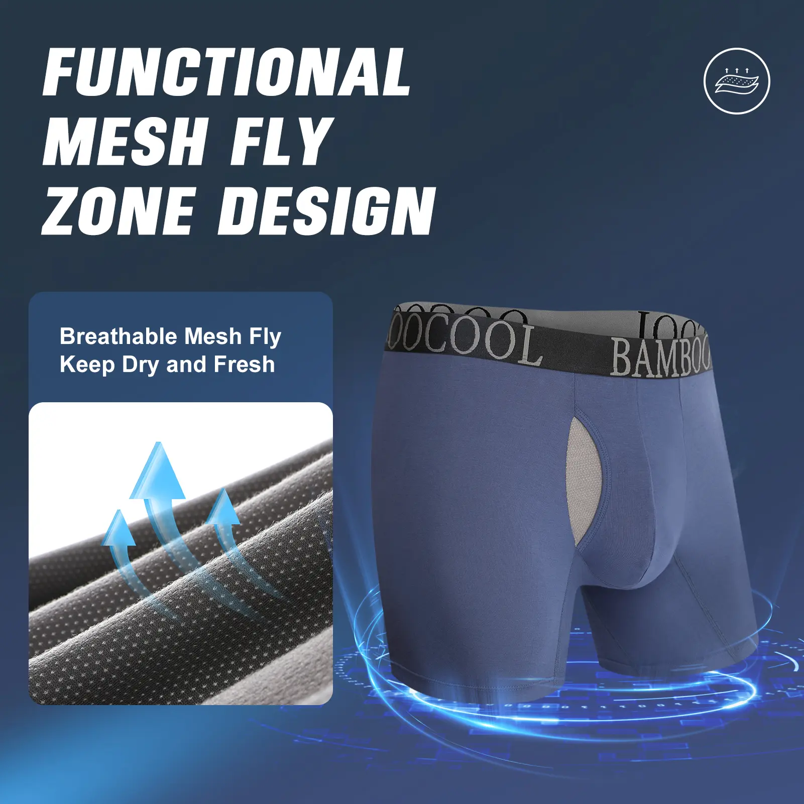 ·Functional Breathable Zone Mesh Fly: Designed with functional mesh fly zone for great breathabilty and comfot,our moisture-wicking mens underwear will accerate air circulation and sweat evaporation through the mesh zone,keeping your privates at the optimal temperature,so you can feel dry and fresh all day along.