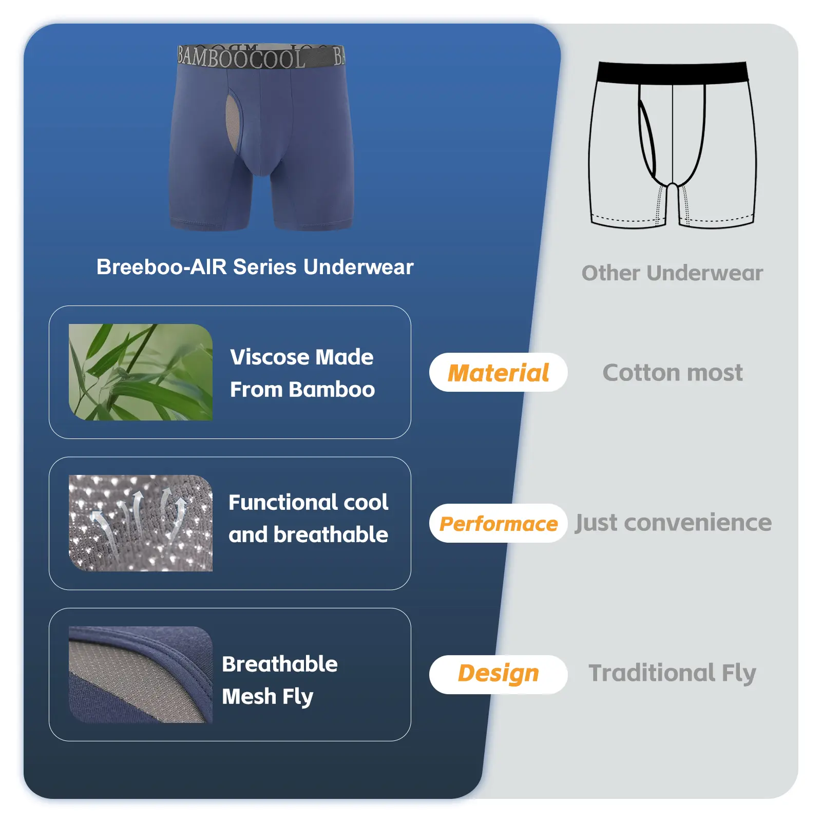 ·BreezeBooAIR Series Underwear:Our BreebooAIR Underwear with nice material are a newly series product from our brand,they are ideal gift for the men who are in searching of the underwear boxer briefs for physical activities and daily casual wear.