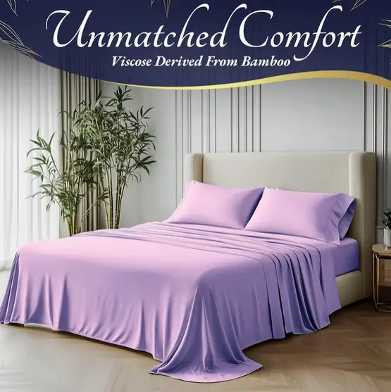 4pcs Bamboo Cooling Bedding - Extra Deep Pocket Breathable And Cooling - Suitable for Hot Sleepers And Sweats, Pillowcases, Flat Sheet And Fitted Sheet - A Perfect Gift for Family, Queen And King Sizes, Next Day Delivery