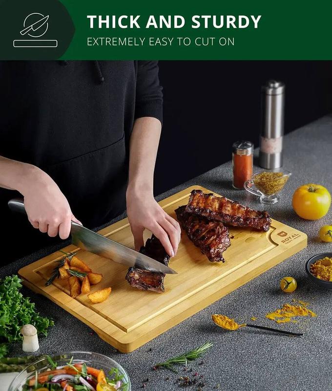 Enhance your kitchen with the Royal Craft Wood Bamboo Cutting Board, which combines practicality, durability, and elegance. Whether hosting a dinner party, enjoying a wine night, or simply preparing a delicious meal, this cutting board is the perfect tool for any occasion.