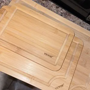 • Natural Bamboo Material: Made from sustainable bamboo, this cutting board set is durable. The 0.6 in / 15mm thickness ensures long-lasting use, maintaining its flatness and withstanding warping, making it a dependable choice for your kitchen.