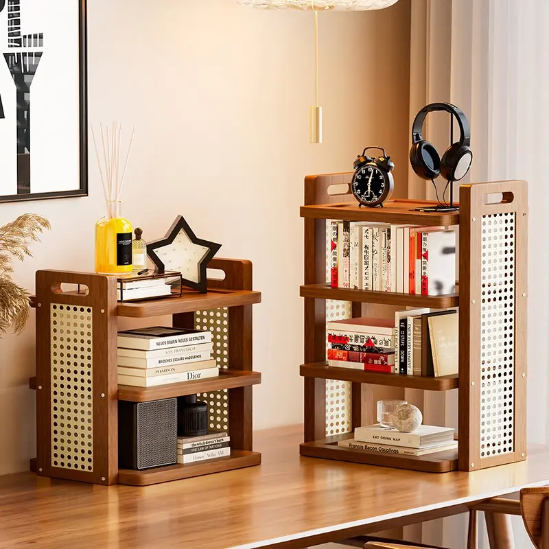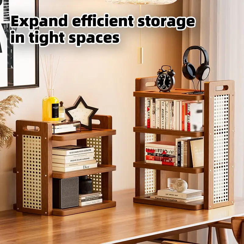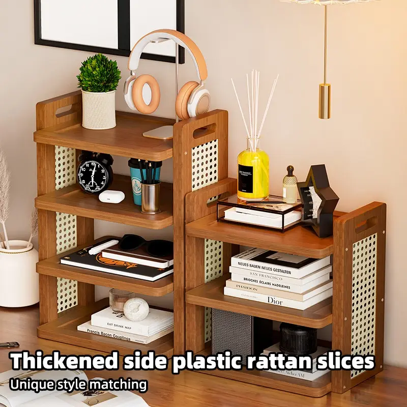 1pc Bamboo Desktop Organizer, Woven Style Bookshelf, Handheld Figure Display Rack, Cosmetic Holder, Cup Storage, Living Room Kitchen Use