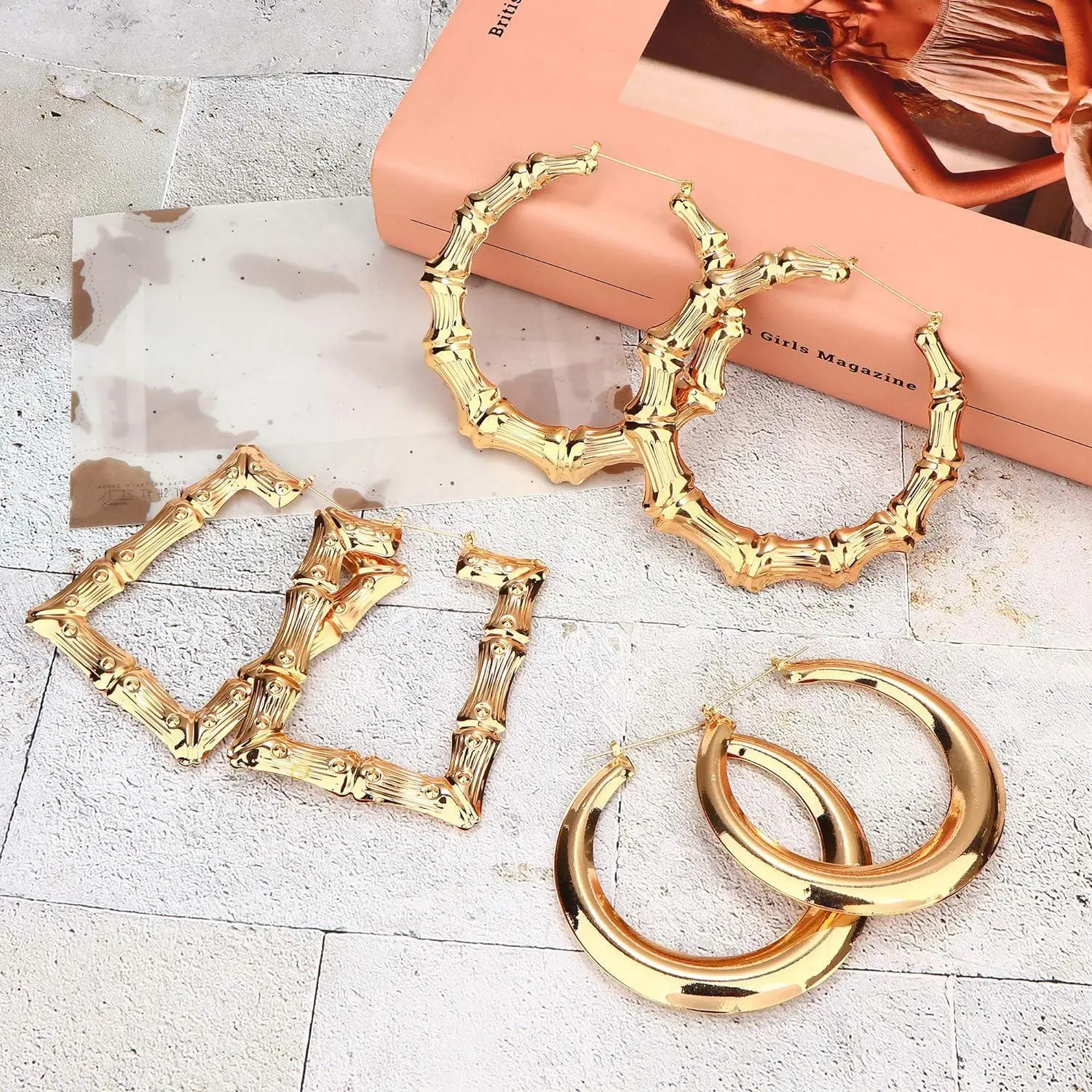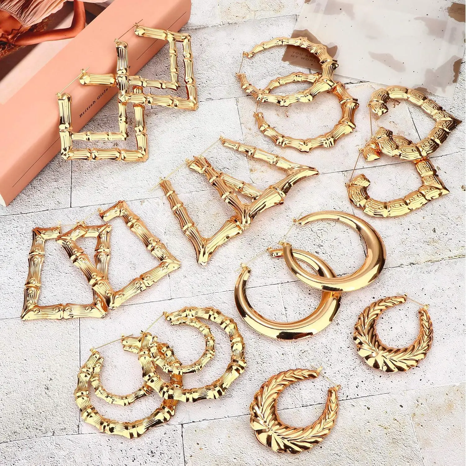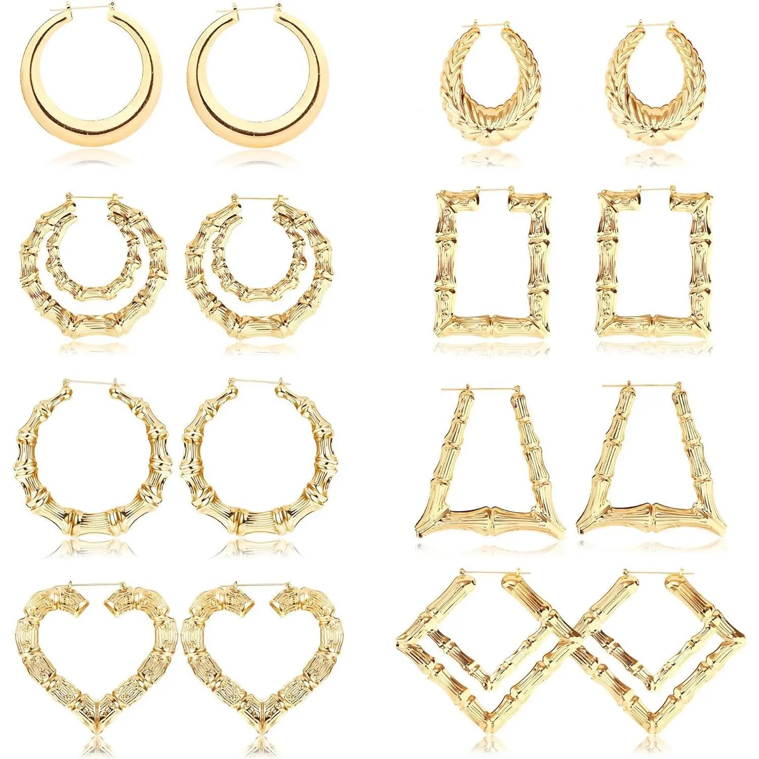 【Bamboo Earrings for Women】A set of 8 pairs of bamboo earrings in different shapes, with a large circle design, fashionable and cool, providing more choices for your daily wear.Heart-shaped, trapezoidal, round, rectangular and other large earrings have a bamboo surface,it shows your personality trend even more.Affordable earring set, you are worth buying.
