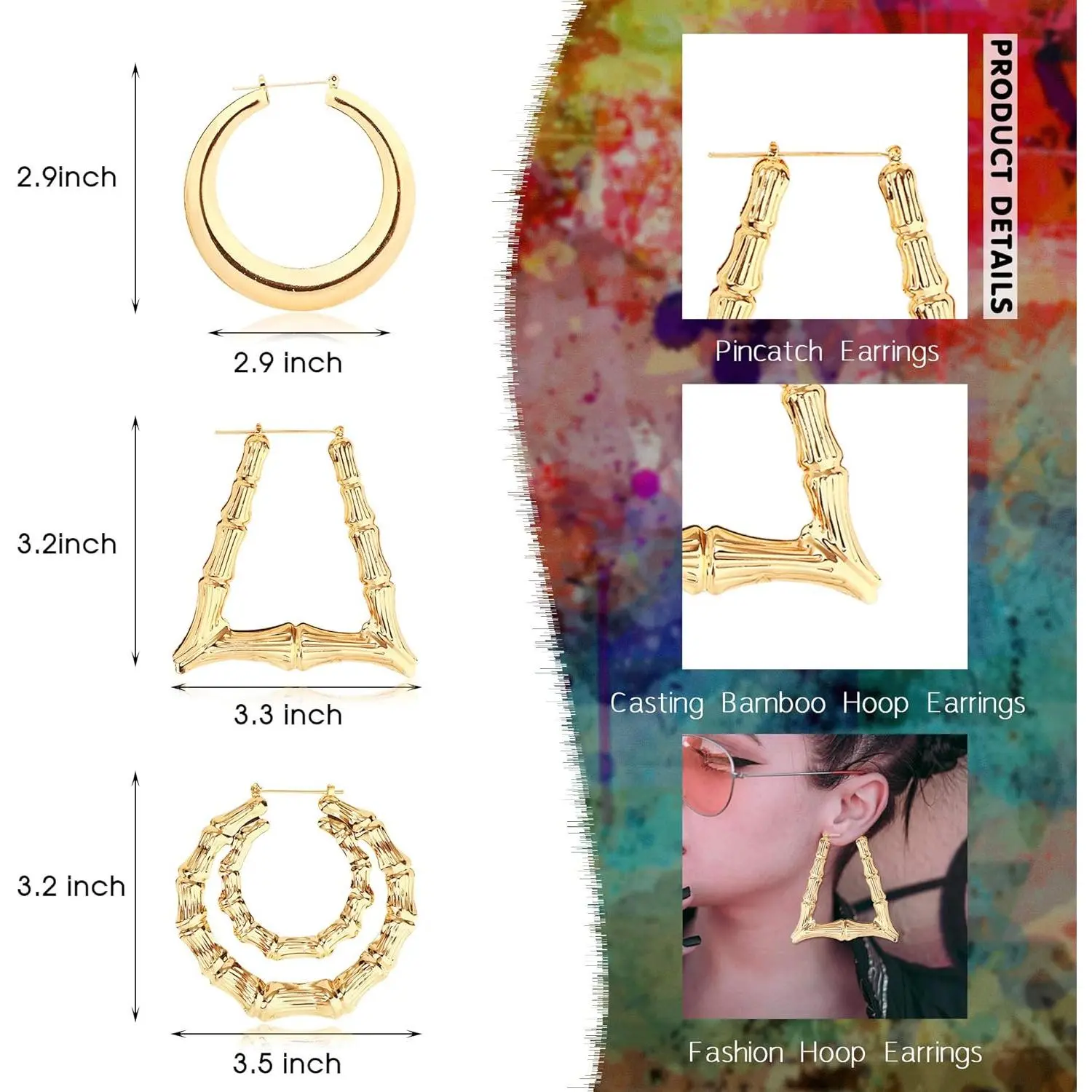 【Bamboo Hoop Earrings Set】The bamboo earrings are made of environmentally friendly alloys, and the ear pins are made of stainless steel, lead-free and nickel-free, suitable for sensitive ears, comfortable to wear, and can be used for a long time. The surface is bright colors.Safe materials, handmade, you can buy with confidence.