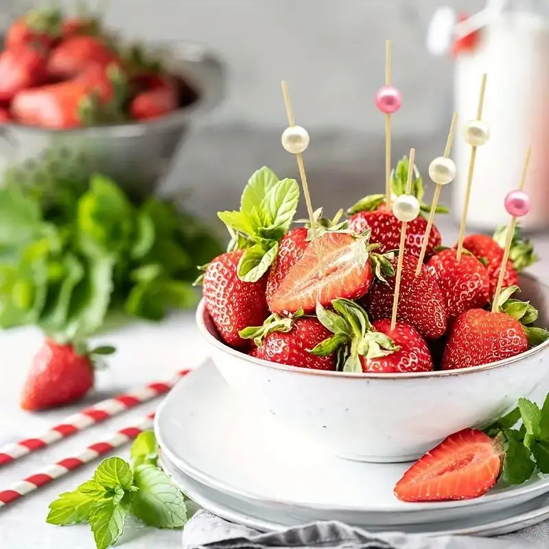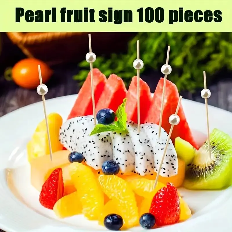 Bamboo Fruit Stick (100pcs), Faux Pearl Decor Cocktail Stick, Party Dessert Stick, Disposable Food Stick for Party, Festive & Party Supplies, Party Accessories, Disposable Cocktail Sticks, Festival Party Supplies