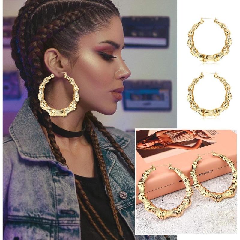 【Big Hoop Earrings】These big earrings are designed from bamboo, simple and delicate. The surface is -plated and the color is bright. Stainless steel ear pins, lead-free and nickel-free, suitable for sensitive ears.It is comfortable to wear and can be used for a long time.