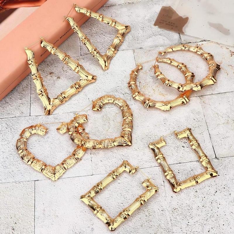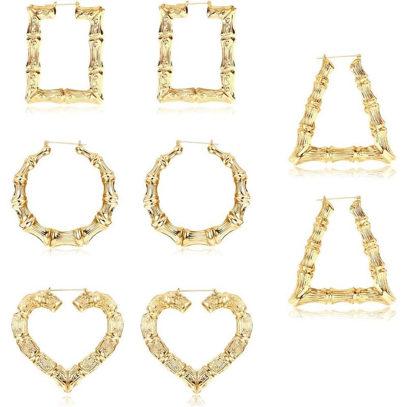 【Bamboo Hoop Earrings】Oversized bamboo earrings set, fashionable and cool.Hoop earrings, heart earrings, trapezoidal earrings, rectangular earrings, 4 pairs of big en earrings, make your outfit more dazzling and beautiful.Different styles give you more choices.
