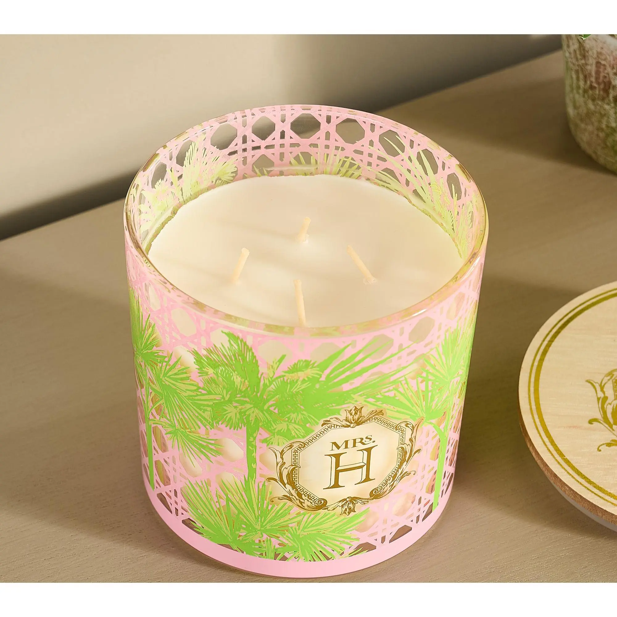 5. Mrs. H by Dee Hilfiger 22oz Bamboo Palm Candle with Wooden Lid