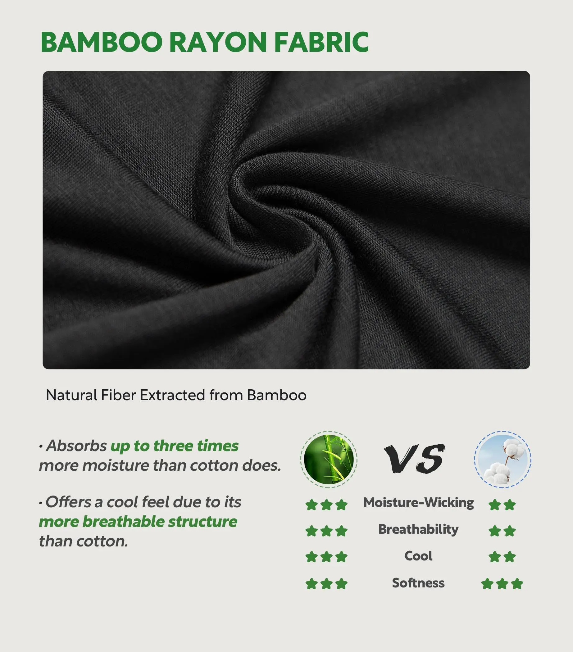 ·VERSATILE PERFORMANCE: Made from Bamboo Rayon - a kind of cellulose fiber extracted from bamboo. It is featured with good air permeability, instant moisture wicking, lightweight and stable dyeing property.