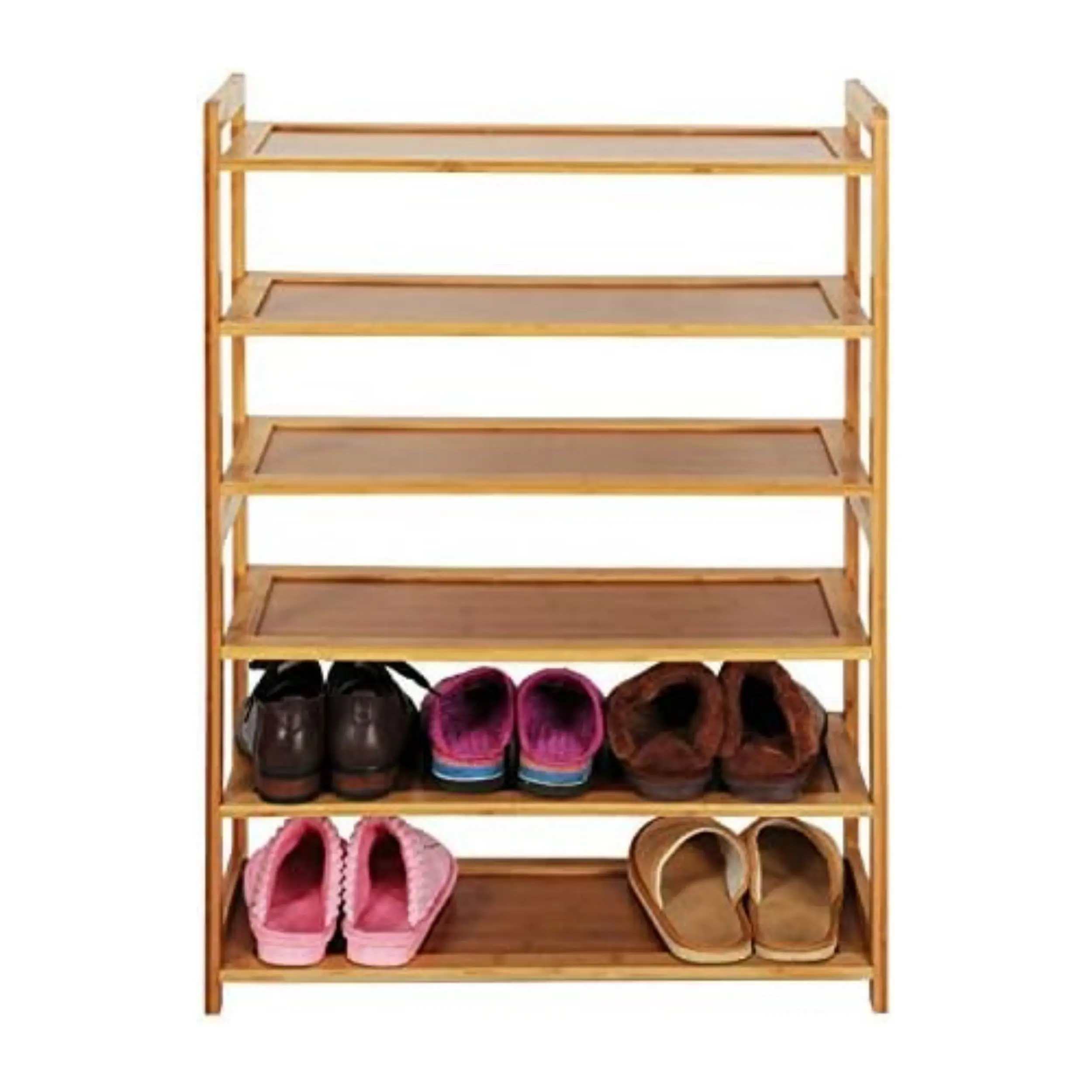 5. Bamboo Shoe Rack, Free Standing Shoe Rack, Wood Color Closets and Entryway Organizer Wood Color (6-Tiers)