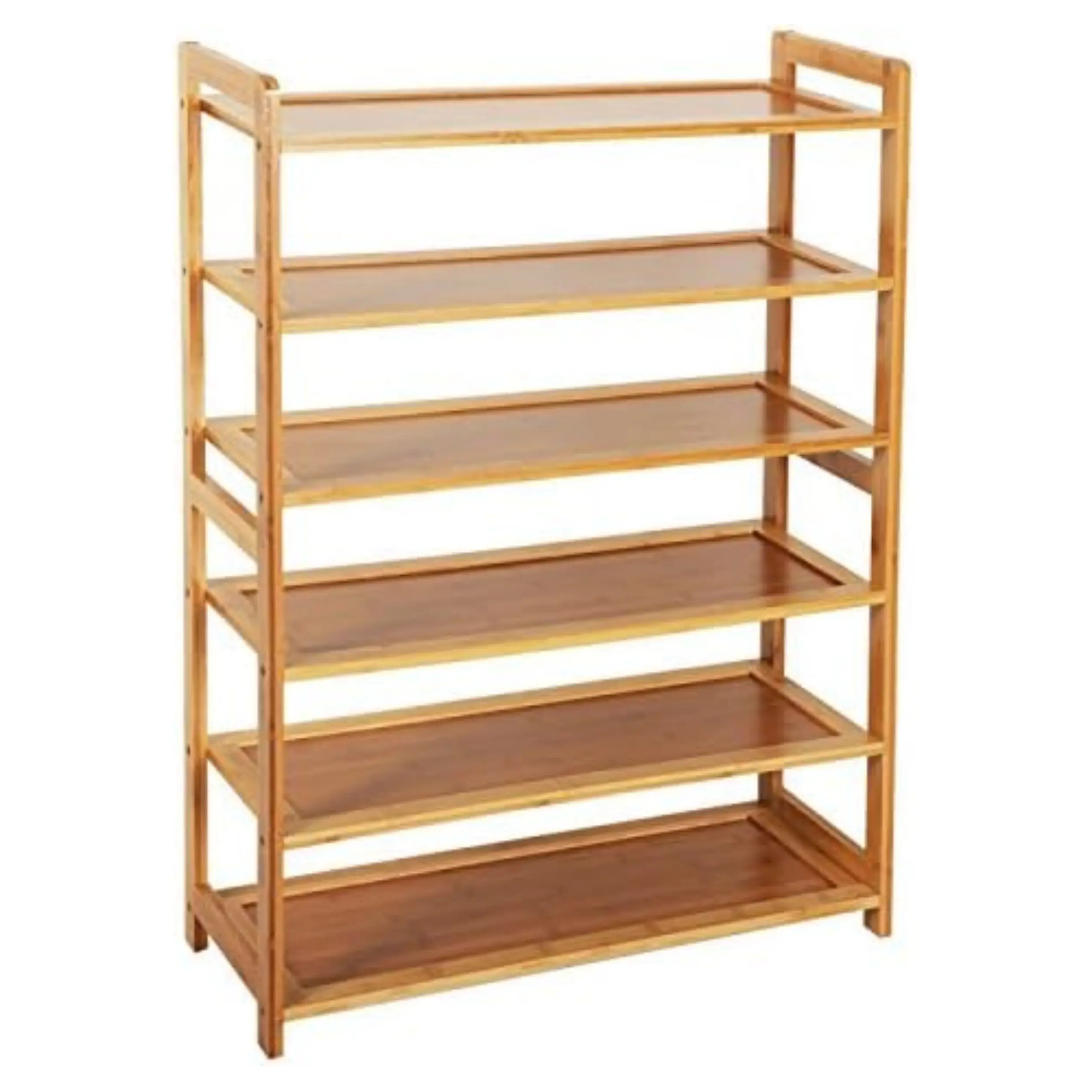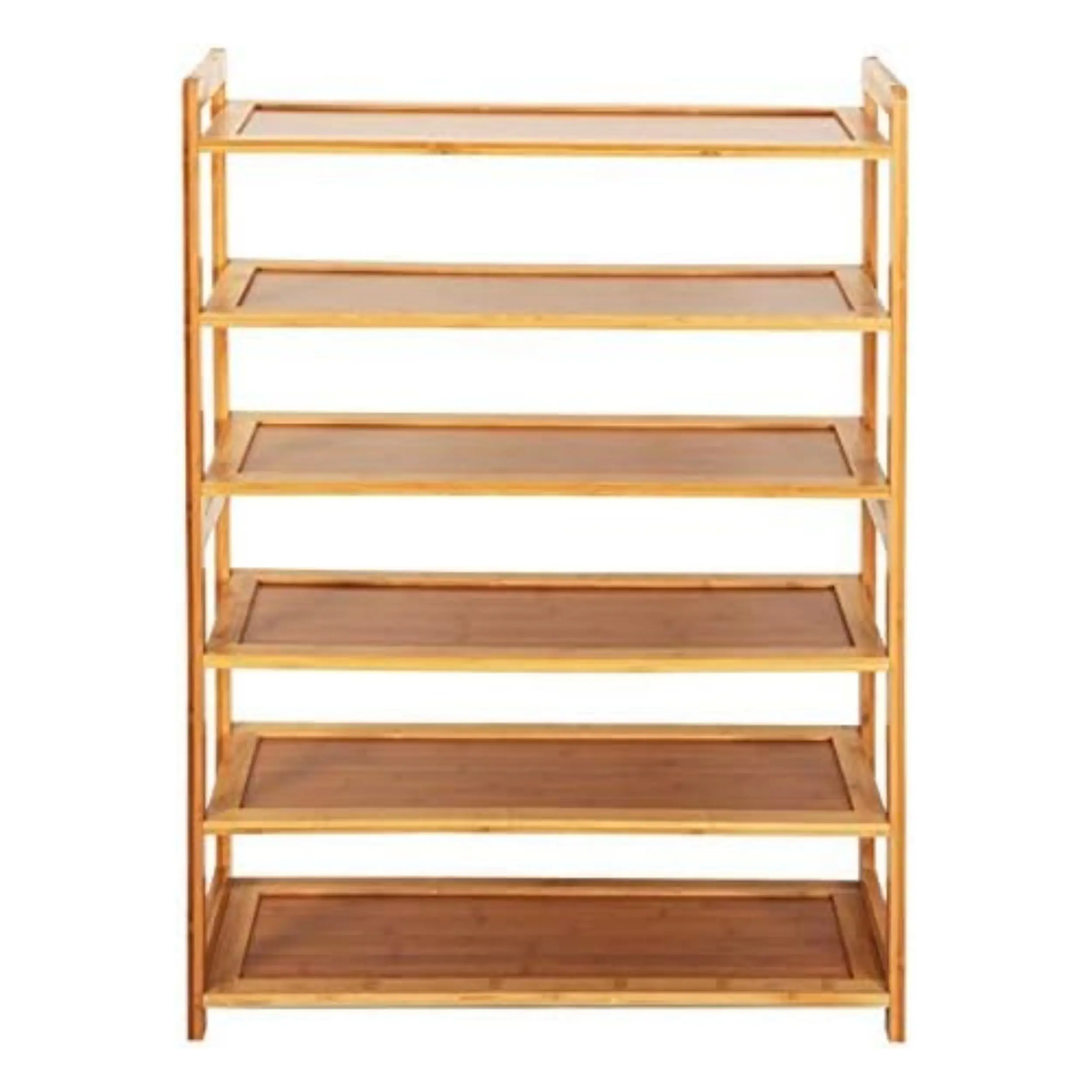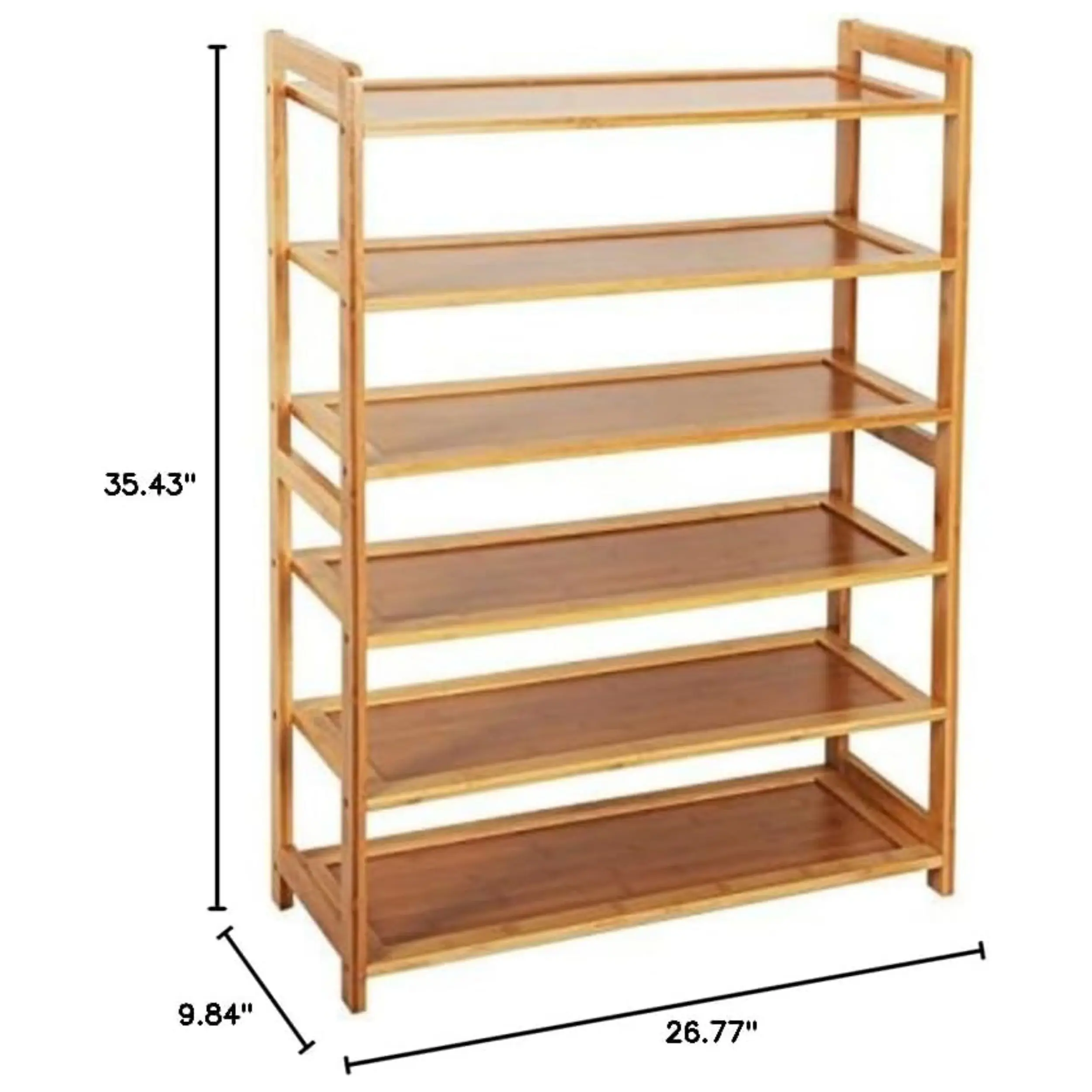 Bamboo Shoe Rack, Free Standing Shoe Rack, Wood Color Closets and Entryway Organizer Wood Color (6-Tiers)