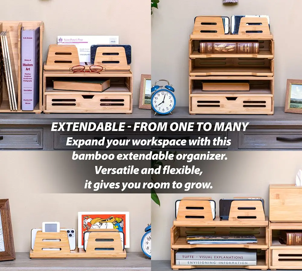Bamboo Stackable Side Load Letter Tray, 2pk (SKU: 71004) Strong & Durable: Made from high-quality bamboo, these letter trays are built to last, providing long-lasting strength and durability. Modern & Natural Design: Features a sleek and contemporary look with a natural bamboo finish, complementing a wide variety of office or home decor. Space-Saving Stackable Design: Maximize your desk space by stacking the letter trays, helping you stay organized while keeping your workspace tidy. Sturdy & Versatile: Strong enough to hold heavy files, notebooks, documents, and more, ensuring reliable storage for your office essentials. Multifunctional Use: Use the top tray to organize additional desk items, such as a calculator, stapler, or tape dispenser, for a more efficient workspace.