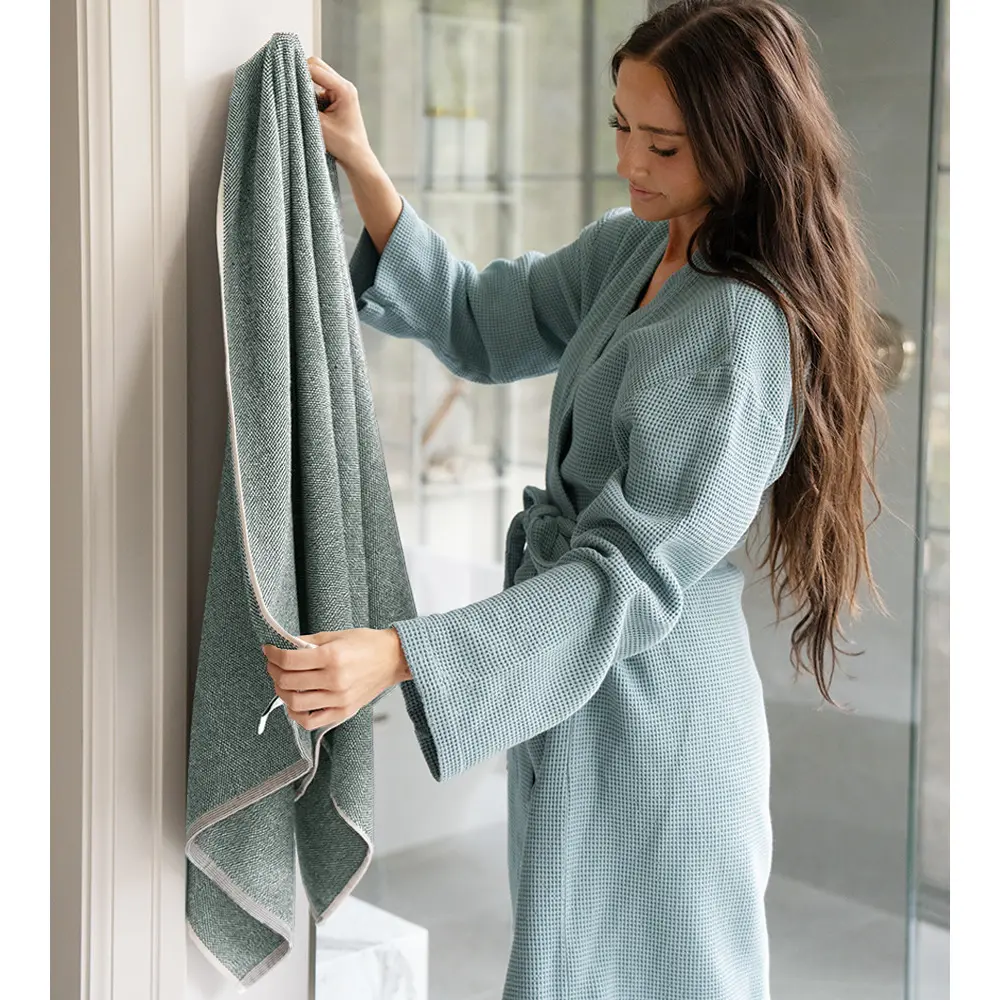 Woven using our unique process that leaves the towel yarn untwisted, creating plush bamboo ribbing for maximum comfort and absorbency.