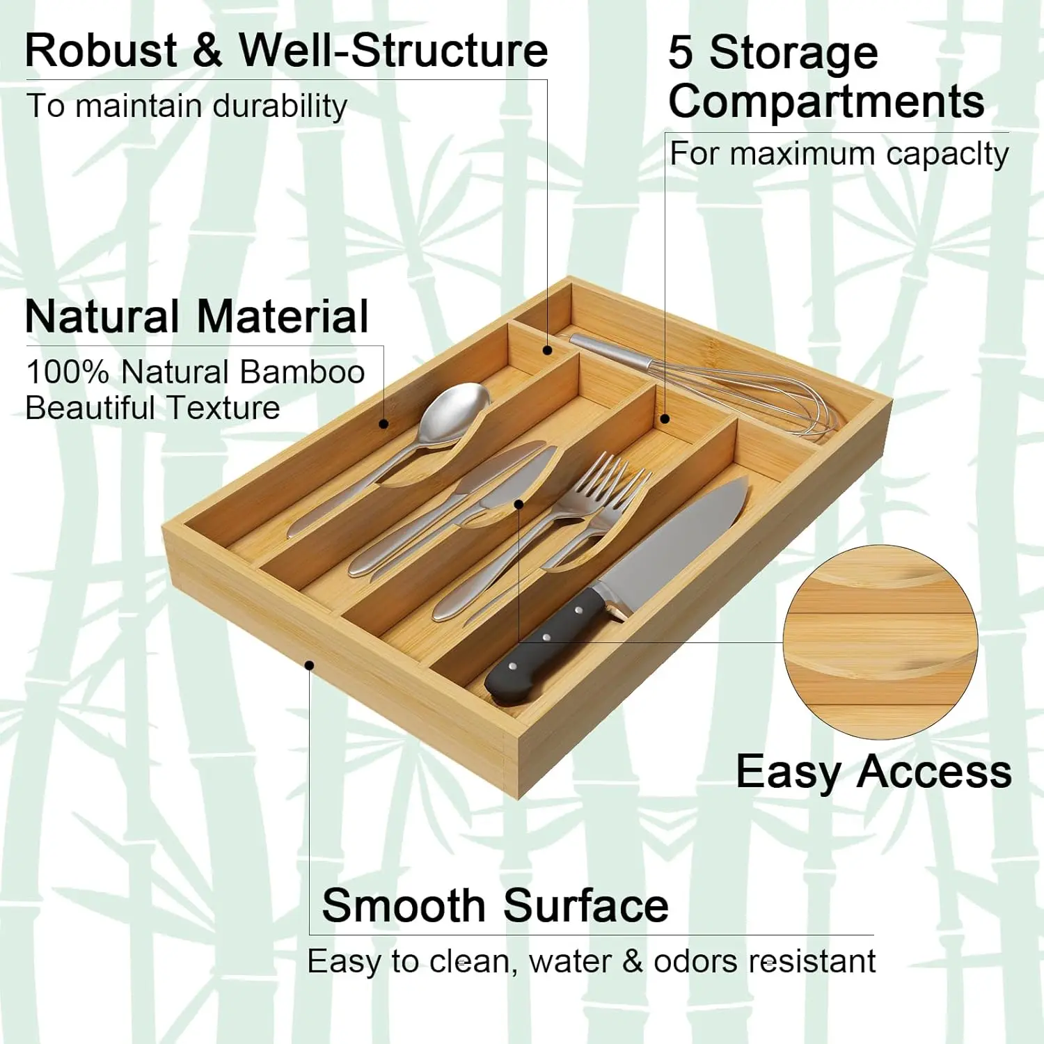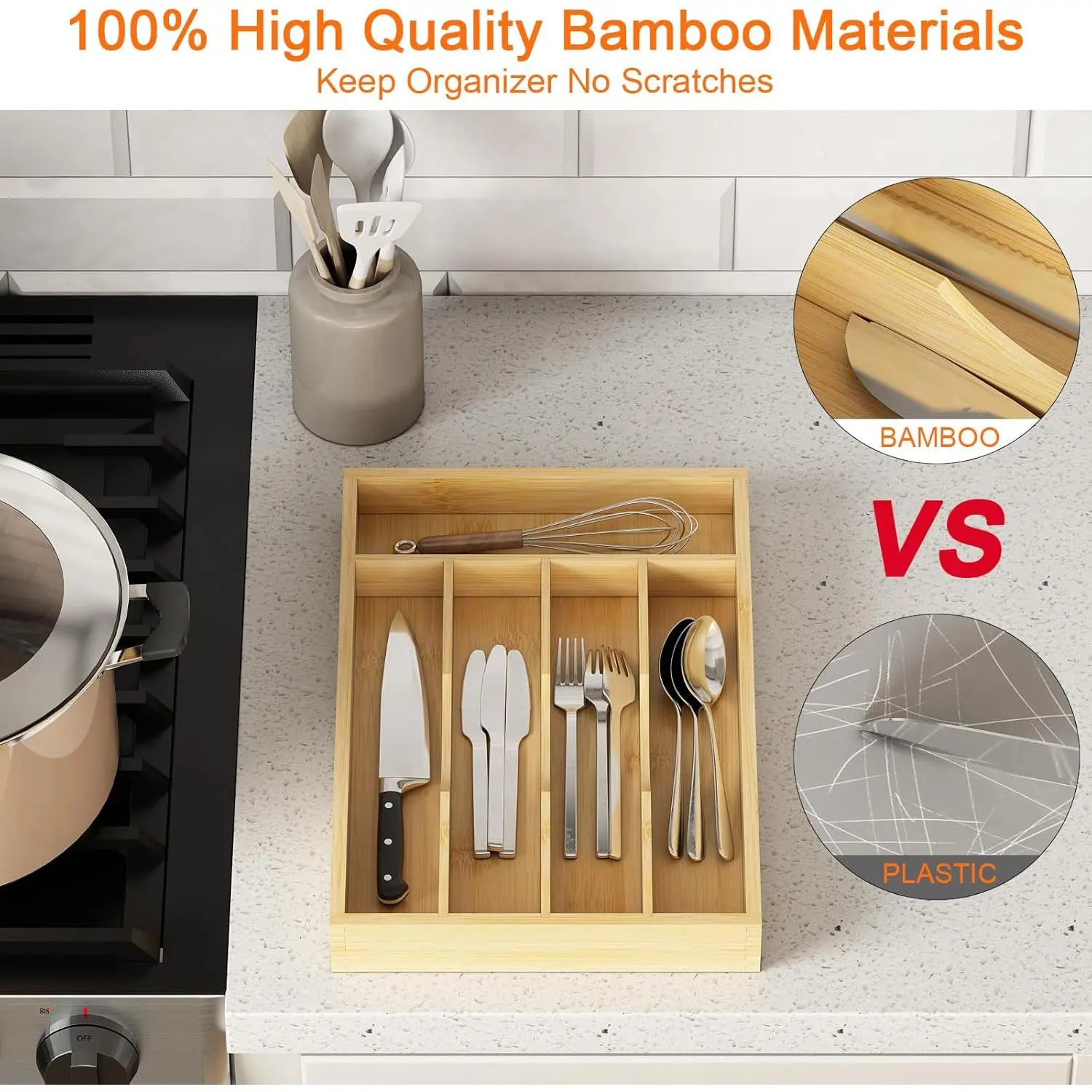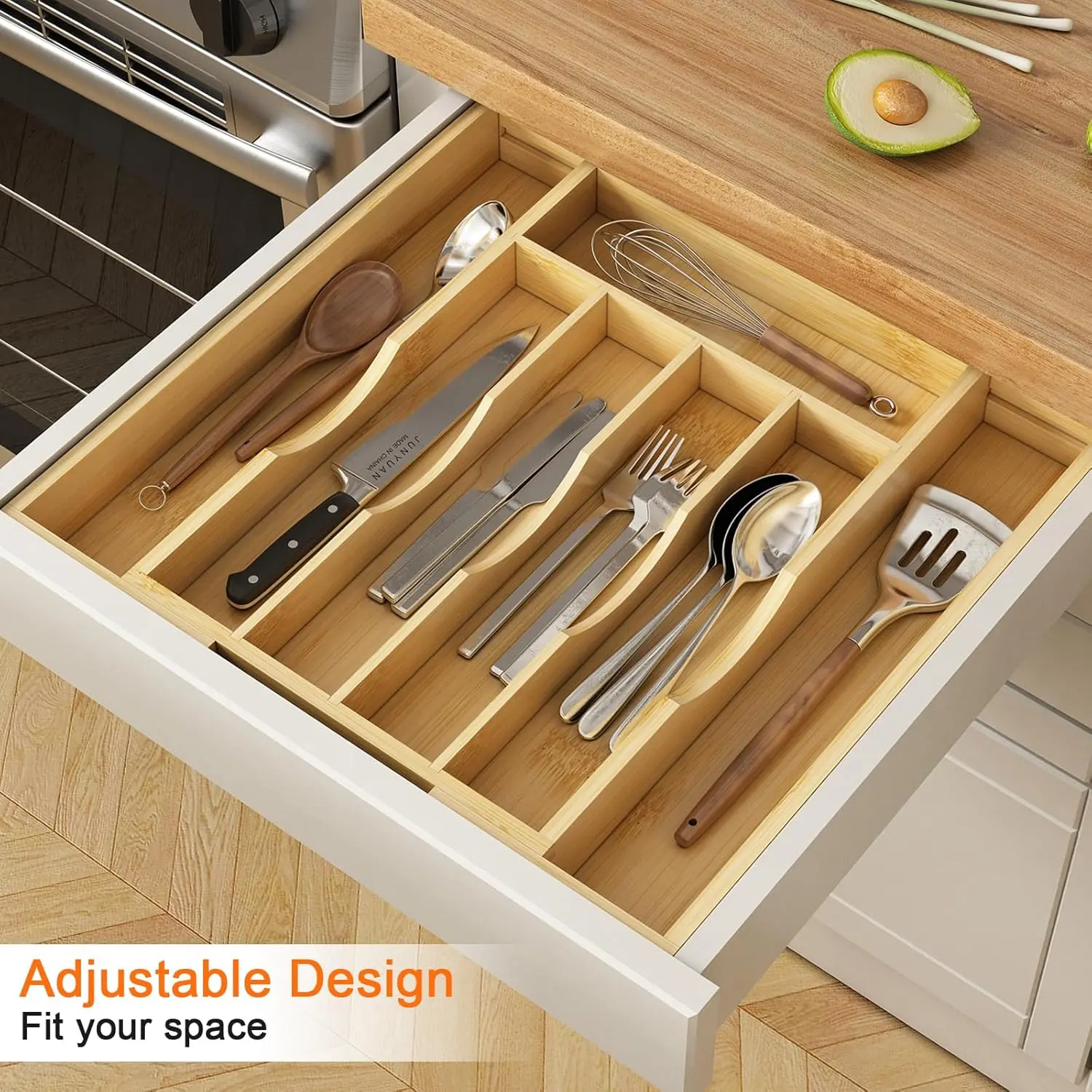 🌿 Bamboo Utensil Organizer for Kitchen Drawers