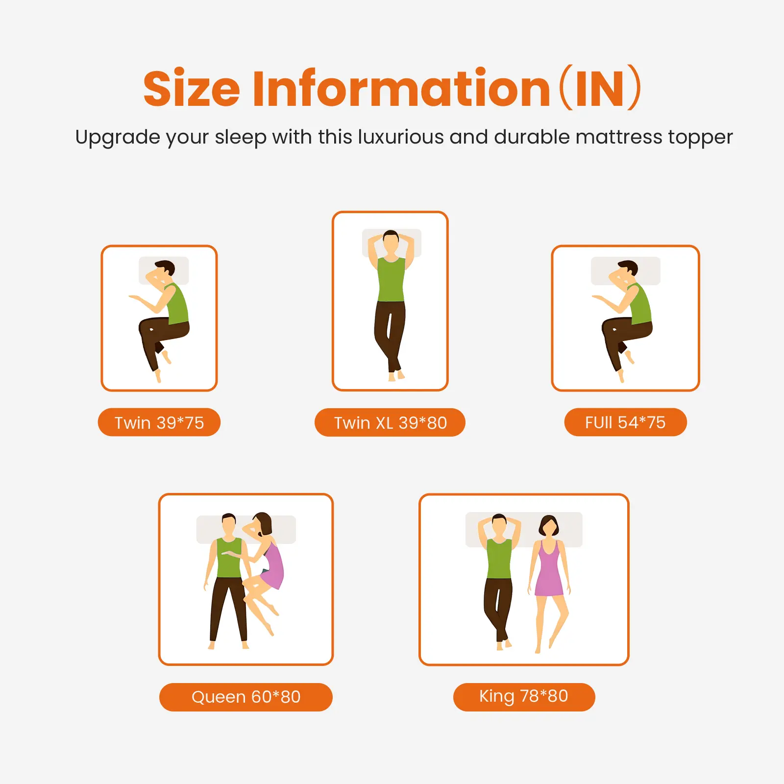 ·【Superior Comfort & Even Support】 Experience the ultimate in plush comfort with our premium foam mattress topper. Designed to perfectly fit your mattress, this mattress pad provides even support and contours to your body, transforming your ordinary mattress into a luxurious sleeping pad. It's the best bedding upgrade for a superior sleep surface.
