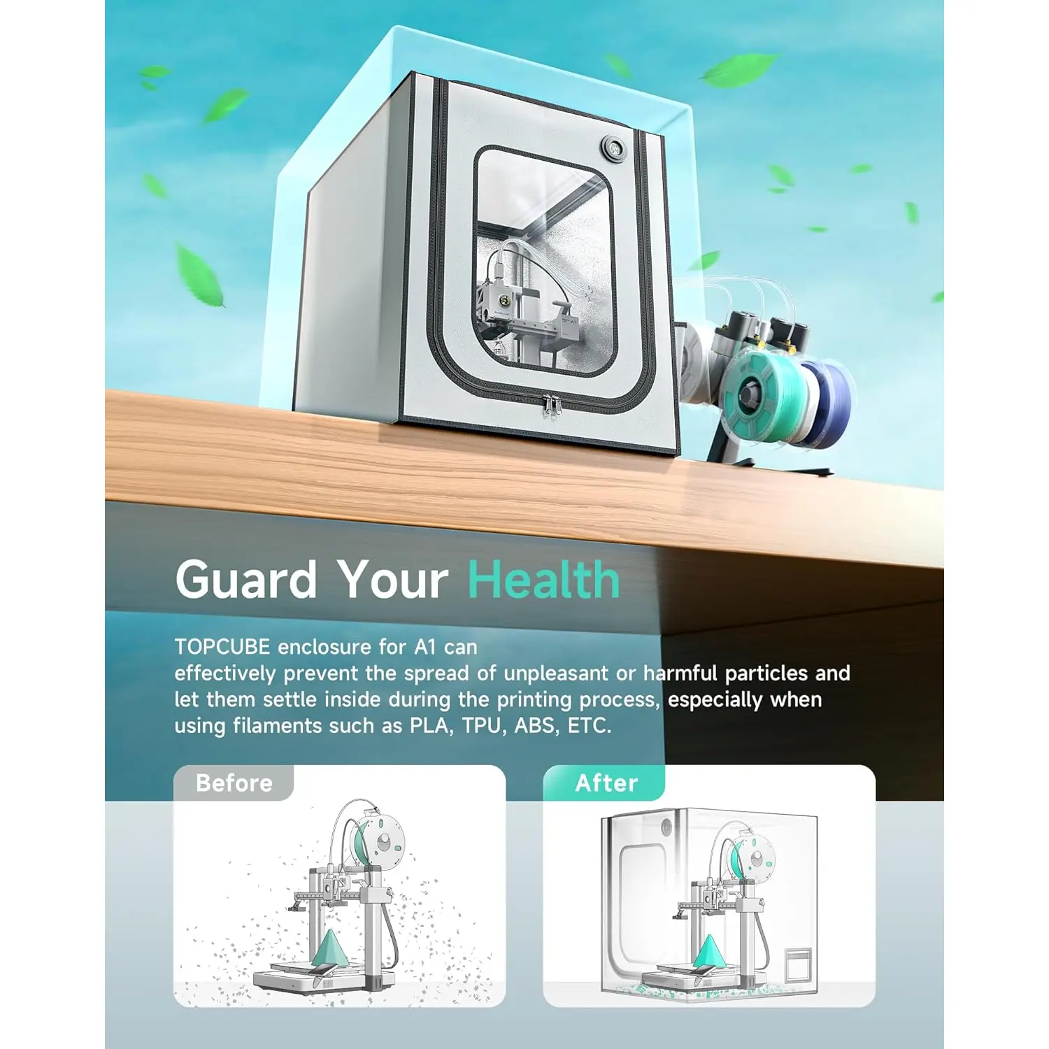Isolate Harmful Particles and Odors: enclosure for A1 can effectively the spread of unpleasant or harmful particles and let them settle inside during the printing process, especially when using filaments such as PLA, TPU, ABS, etc.