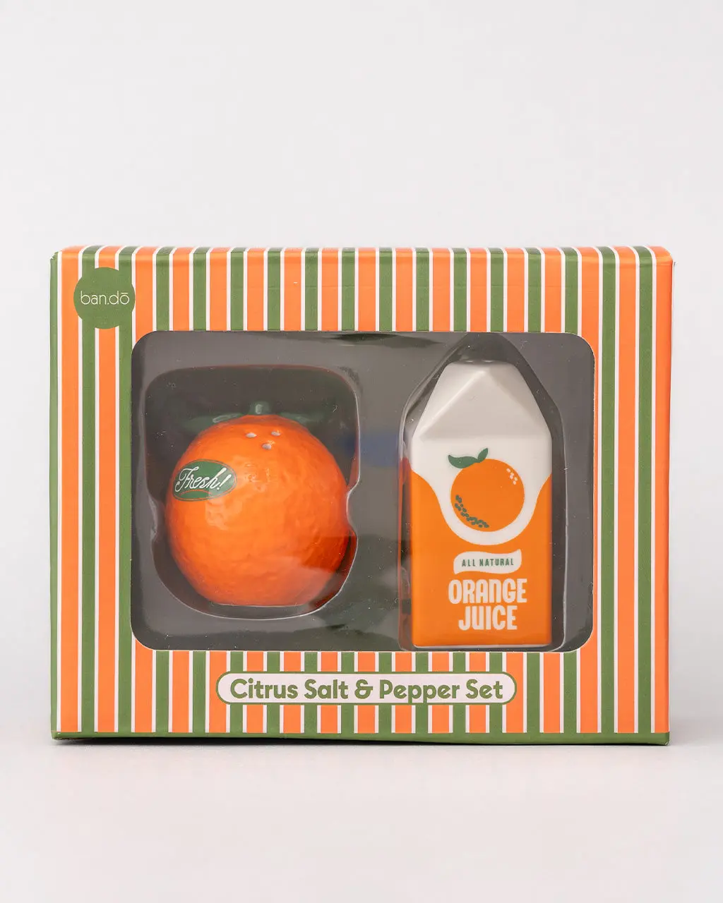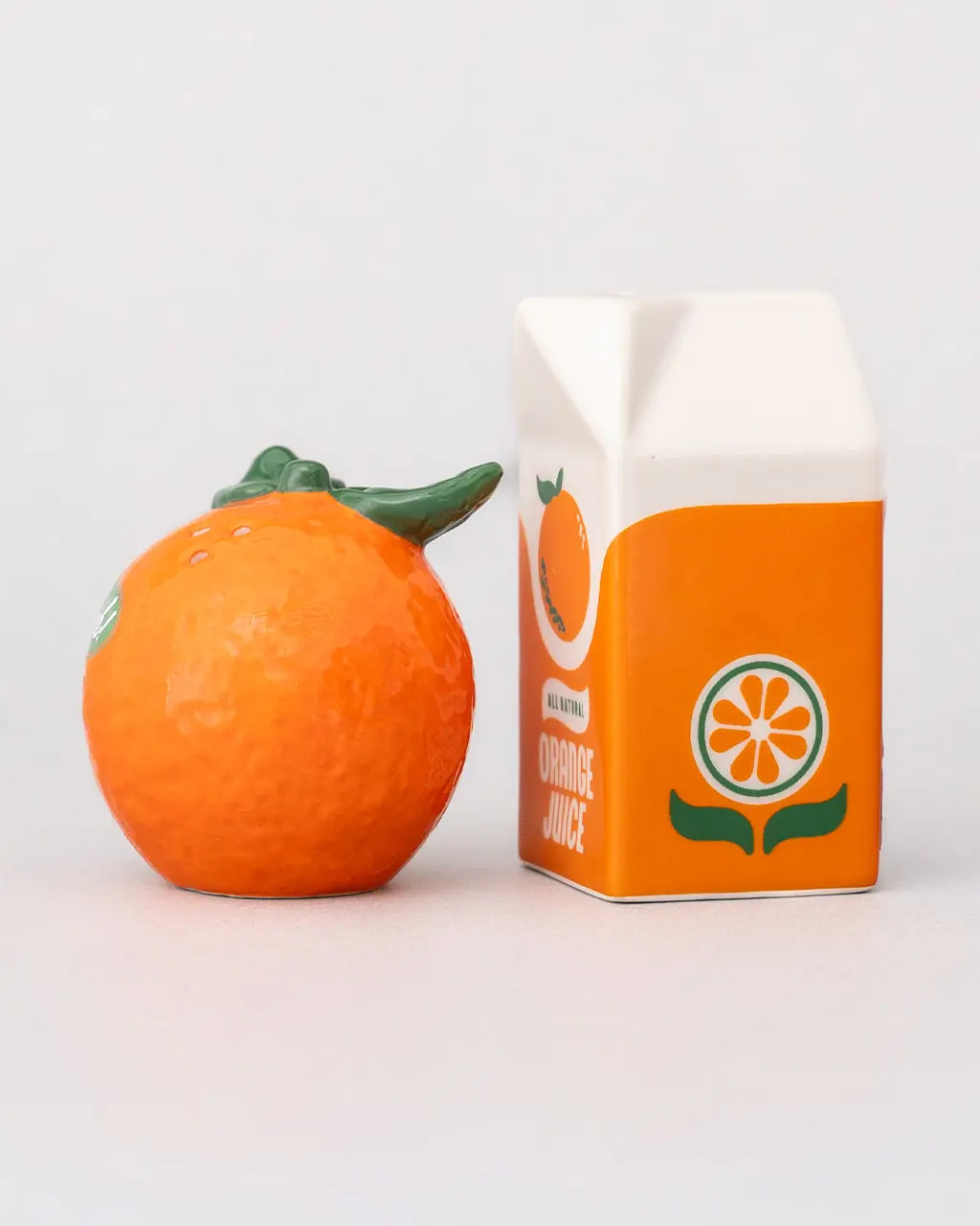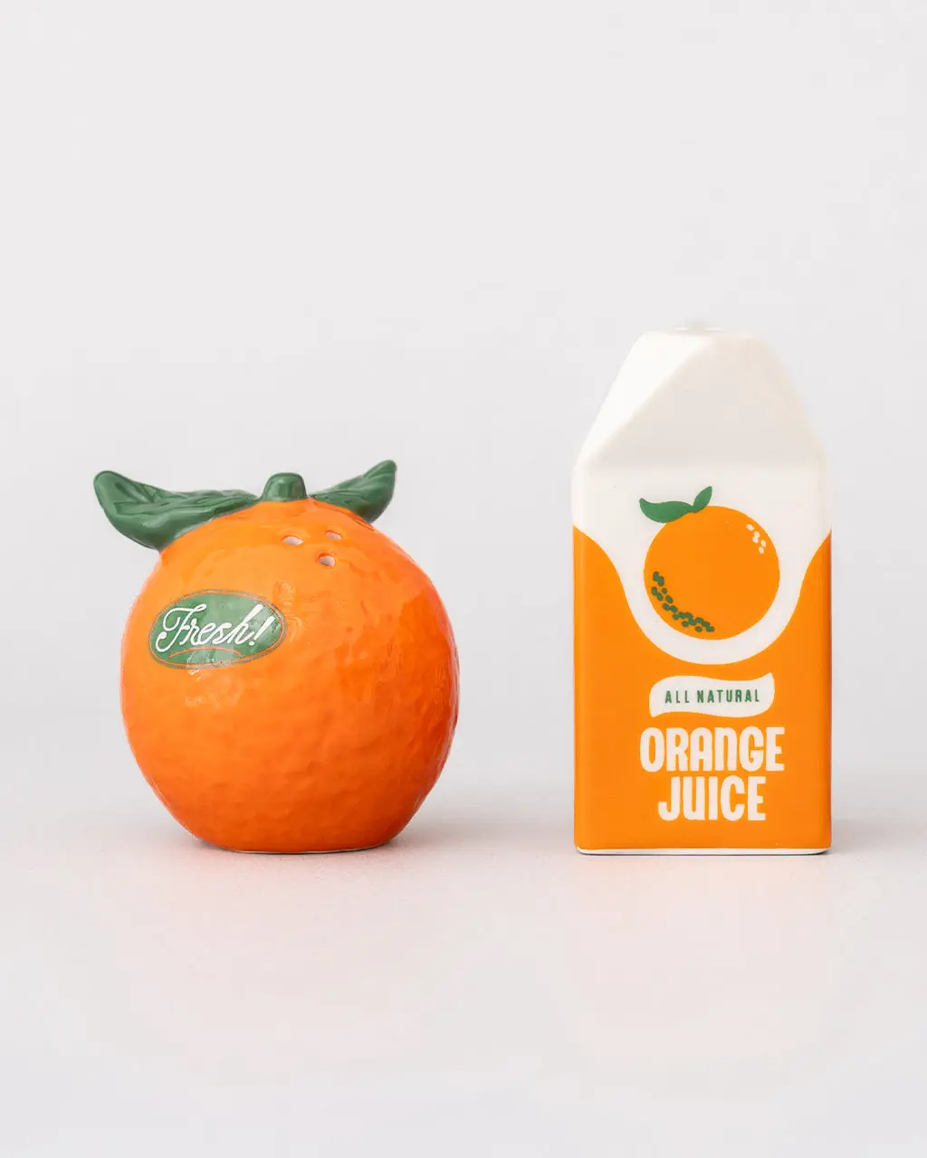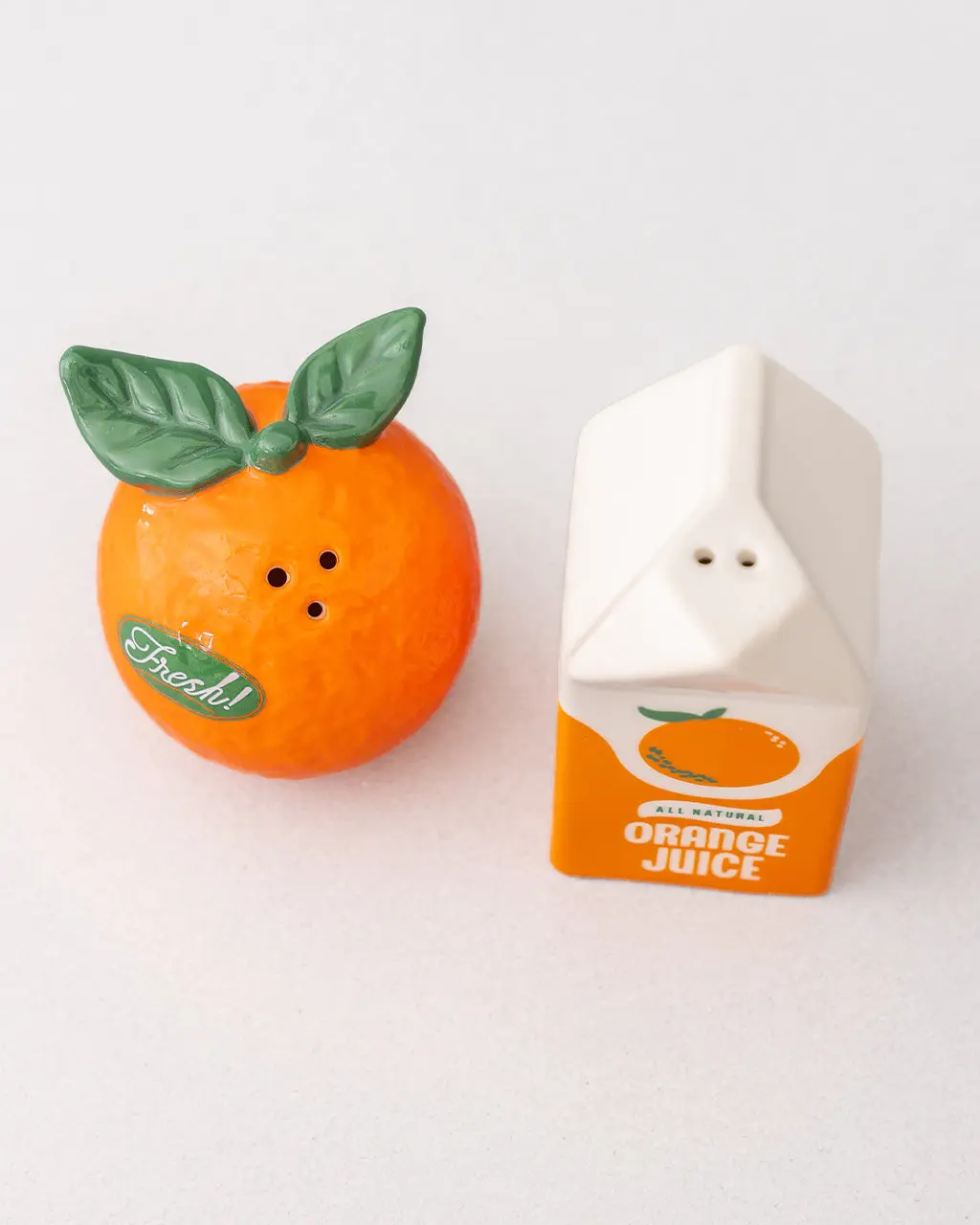 These salt and pepper shakers are so cute we could give ’em a squeeze. You’ll get one bright little orange and one orange juice carton, ready to bring a splash of fun to your table, countertop or picnic spread.