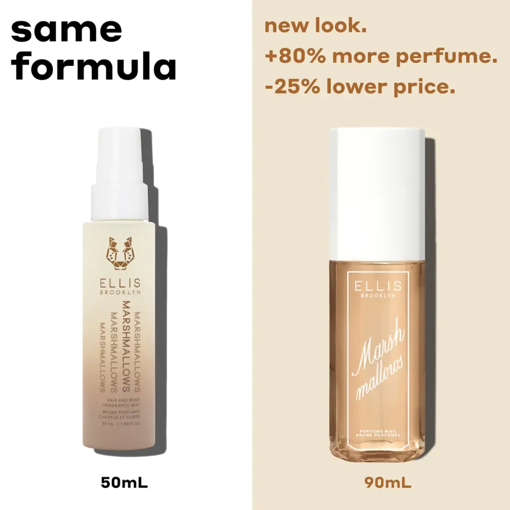 Experience this playful take on the delicious fun of marshmallows with the elevated vibe of milky musks and vanilla orchid. MARSHMALLOWS hair and body fragrance mist embraces you in a delicately sweet cloud of inviting yumminess.