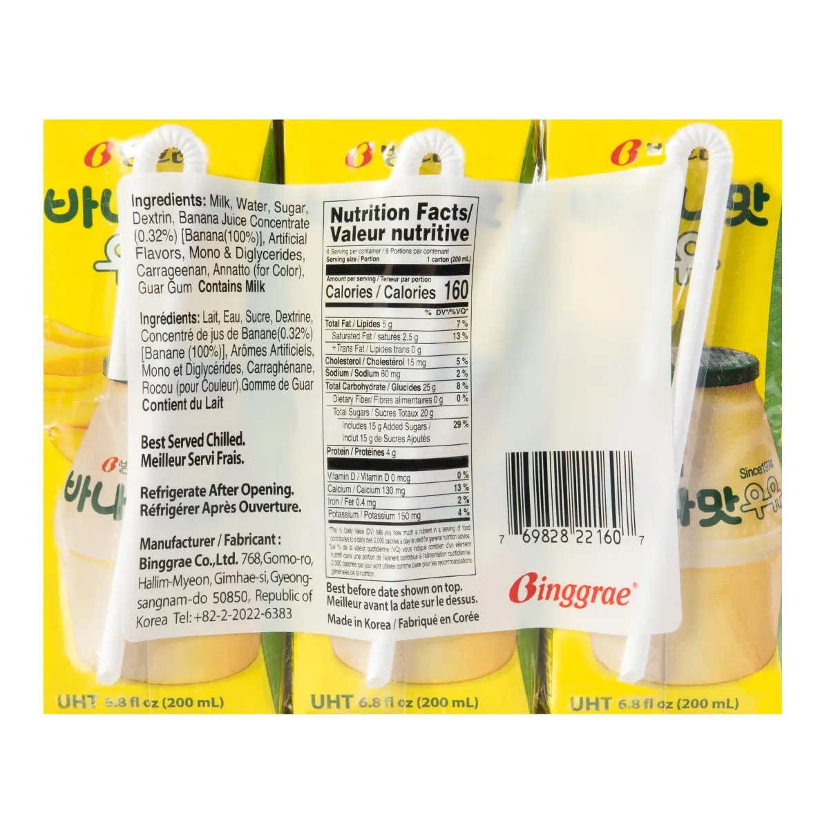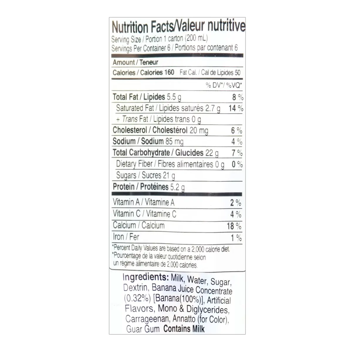 ·Milk, Water, Sugar, Dextrin, Banana Juice Concentrate(0.32%) [Banana(100%)], Artifical Flavors, Mono & Diglycerides, Carrageenan, Annatto (For Color), Guar Gum.