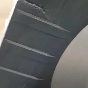 Hold the blade on the guides and push in. Make sure the blade evenly fits around the wheels