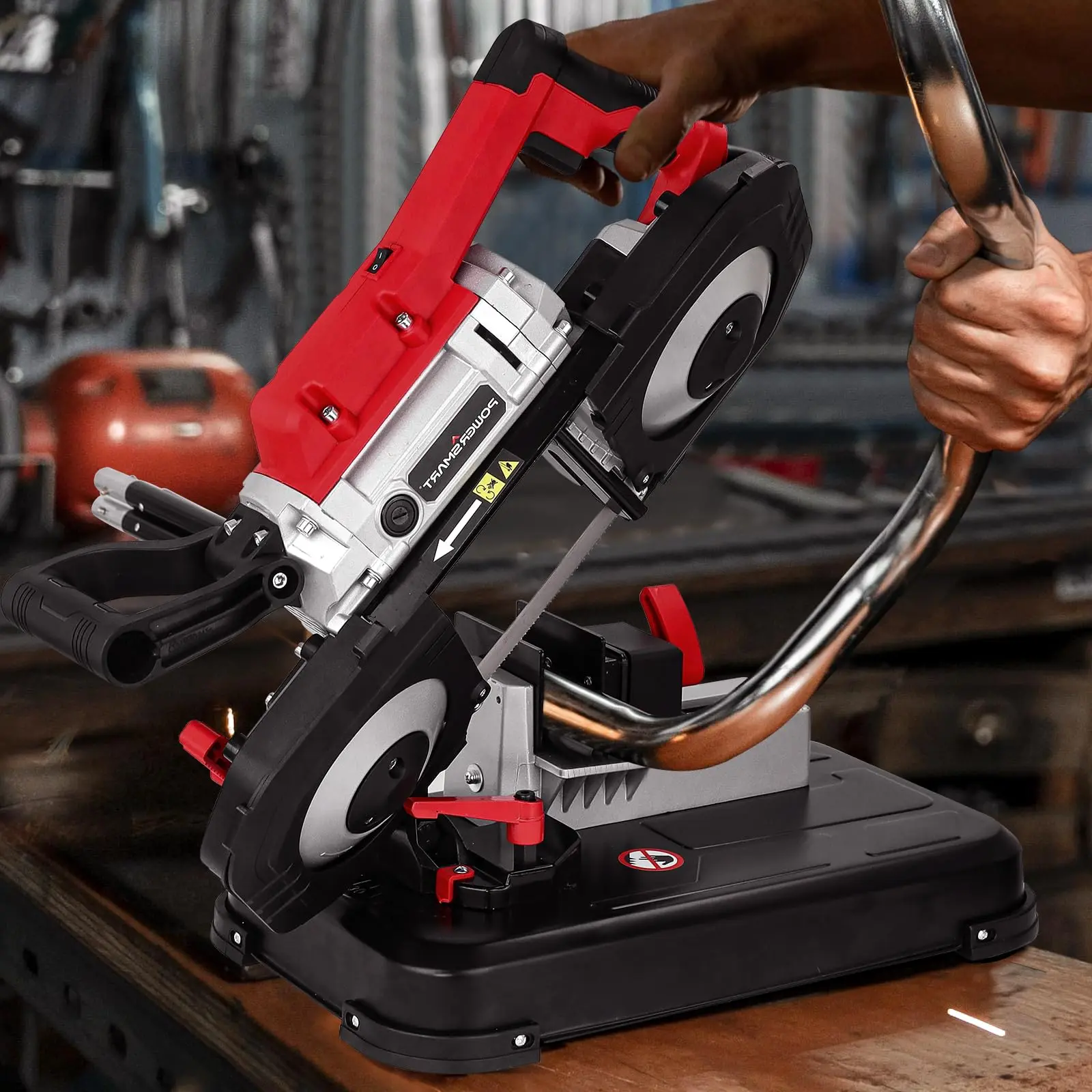 ·Protable band saw with Base: Weights 30 lbs include removable alloy steel base, rotatable cutting angle 0-45°. Suitable for precision cutting, base is easy to remove.