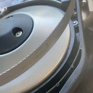 Set the blade into both guide bearings, making sure the blade is centered on them.