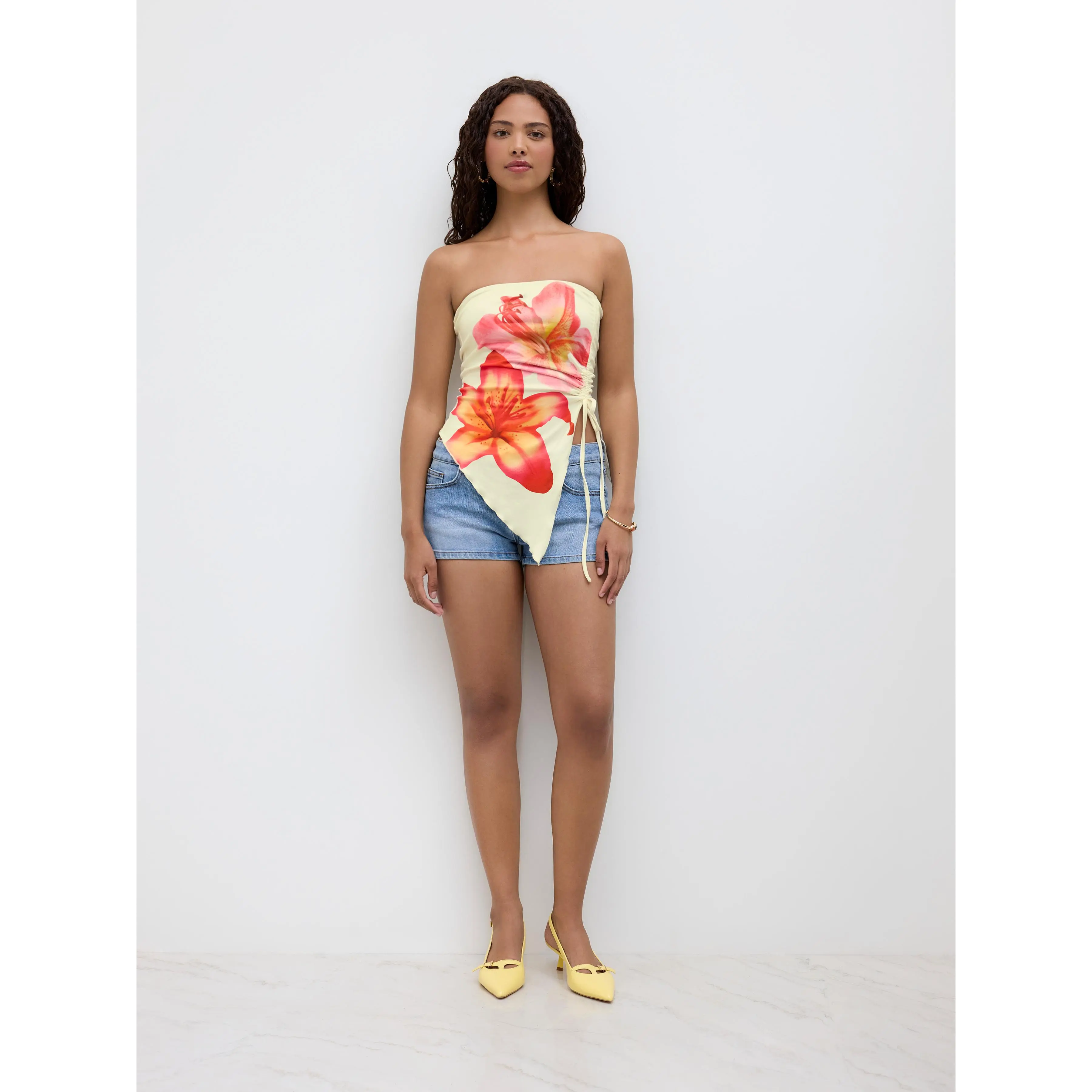 5. Cider [size 2-10] Floral Graphic Drawstring Asymmetrical Hem Bandeau Top