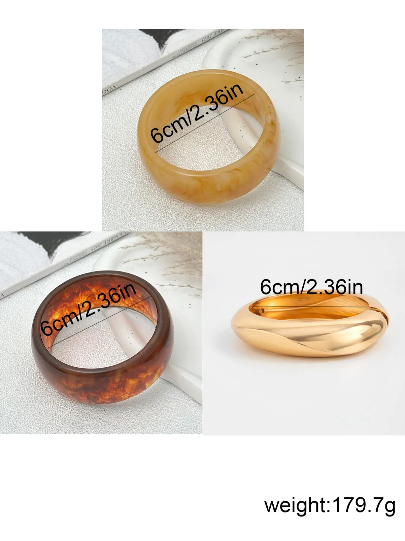 These bangles are everything! Nice weight and color. Perfect accessories if you like chunky jewelry