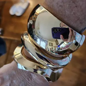 These bracelets are absolutely stunning! They look just like the photo—bold, shiny, and very stylish. The quality is impressive, and they feel very heavy and substantial, which makes them feel more expensive than they are. Just be aware they have a good amount of weight to them. I’m really happy with this purchase!