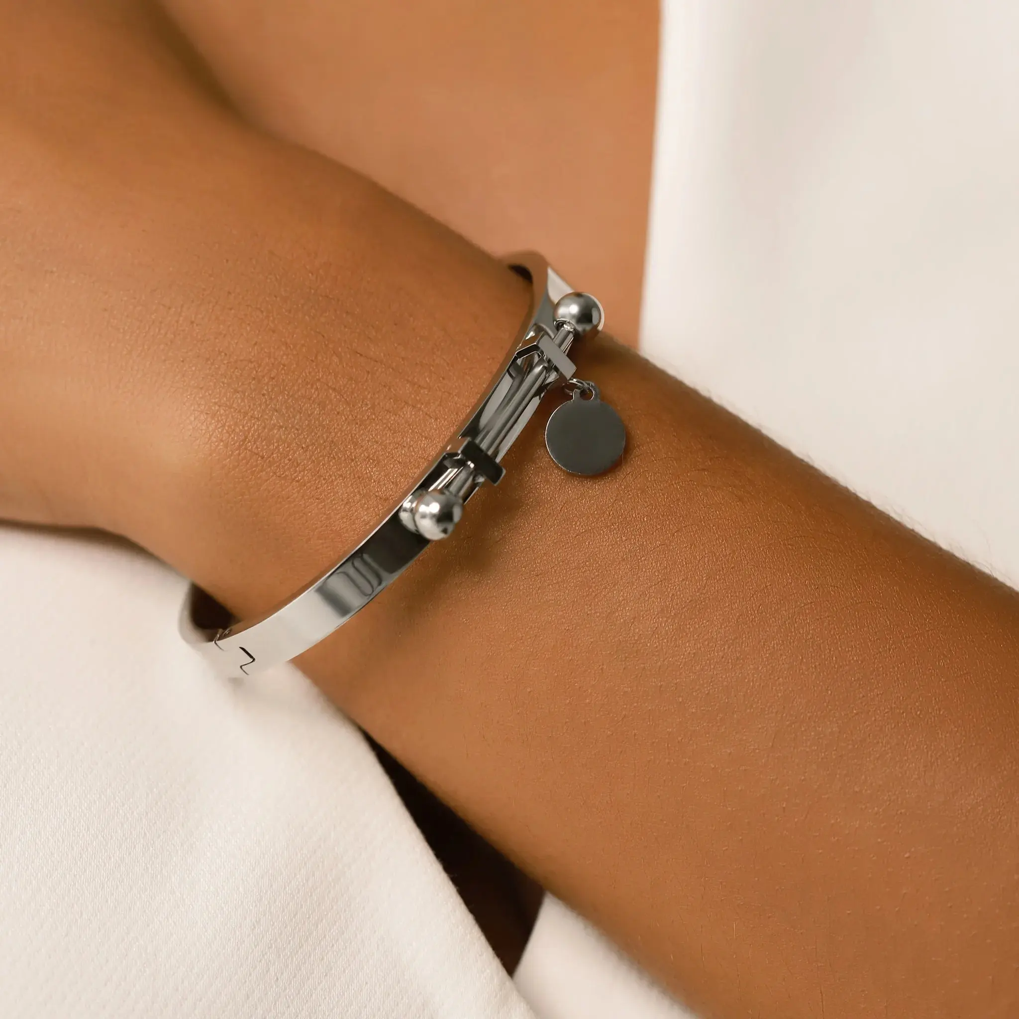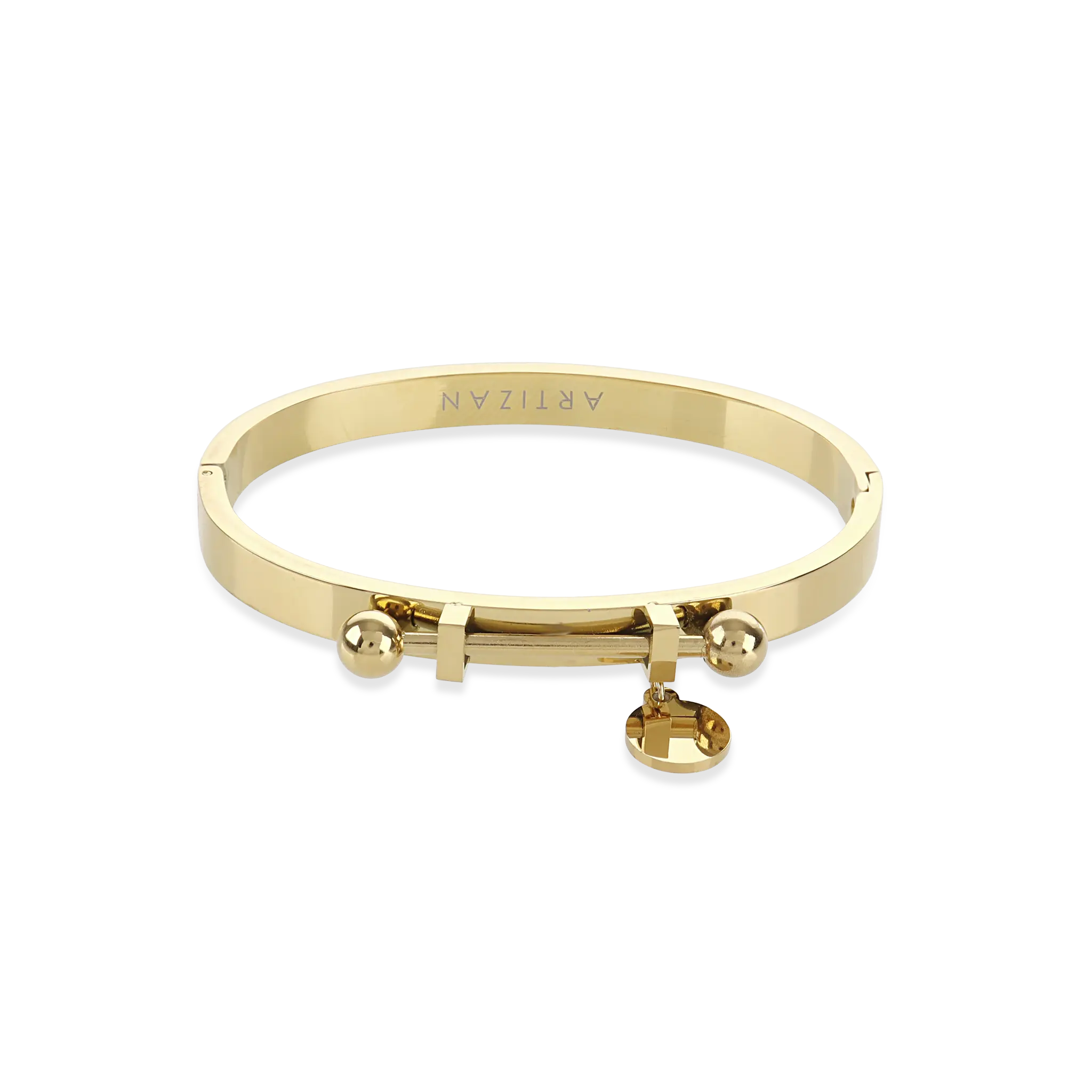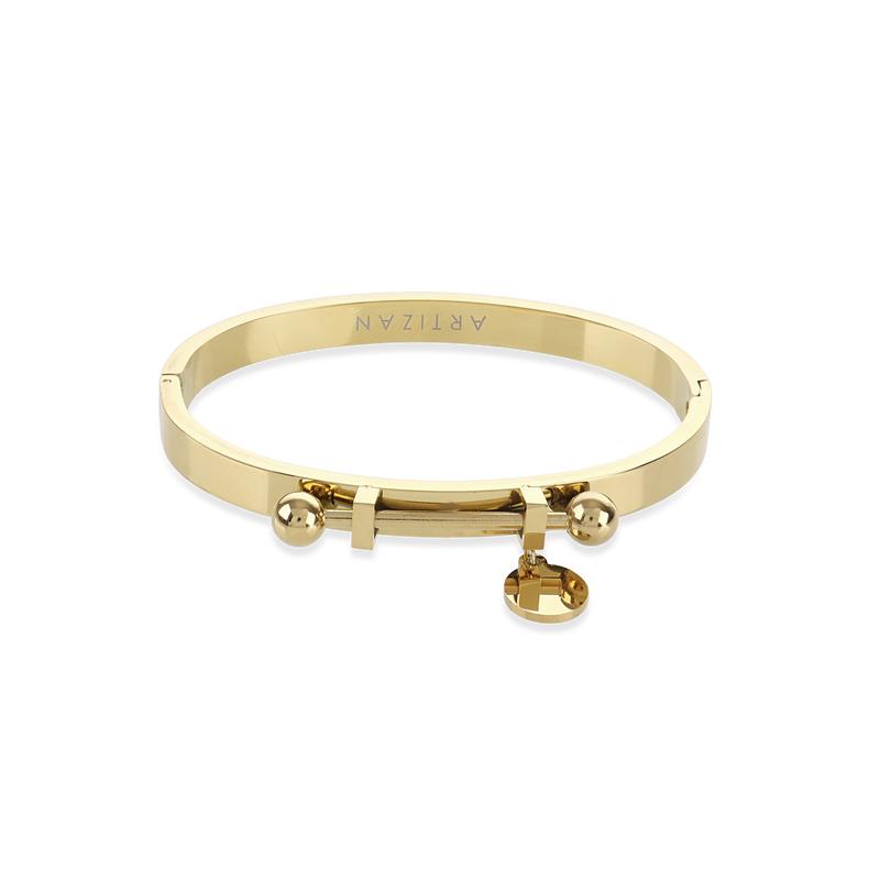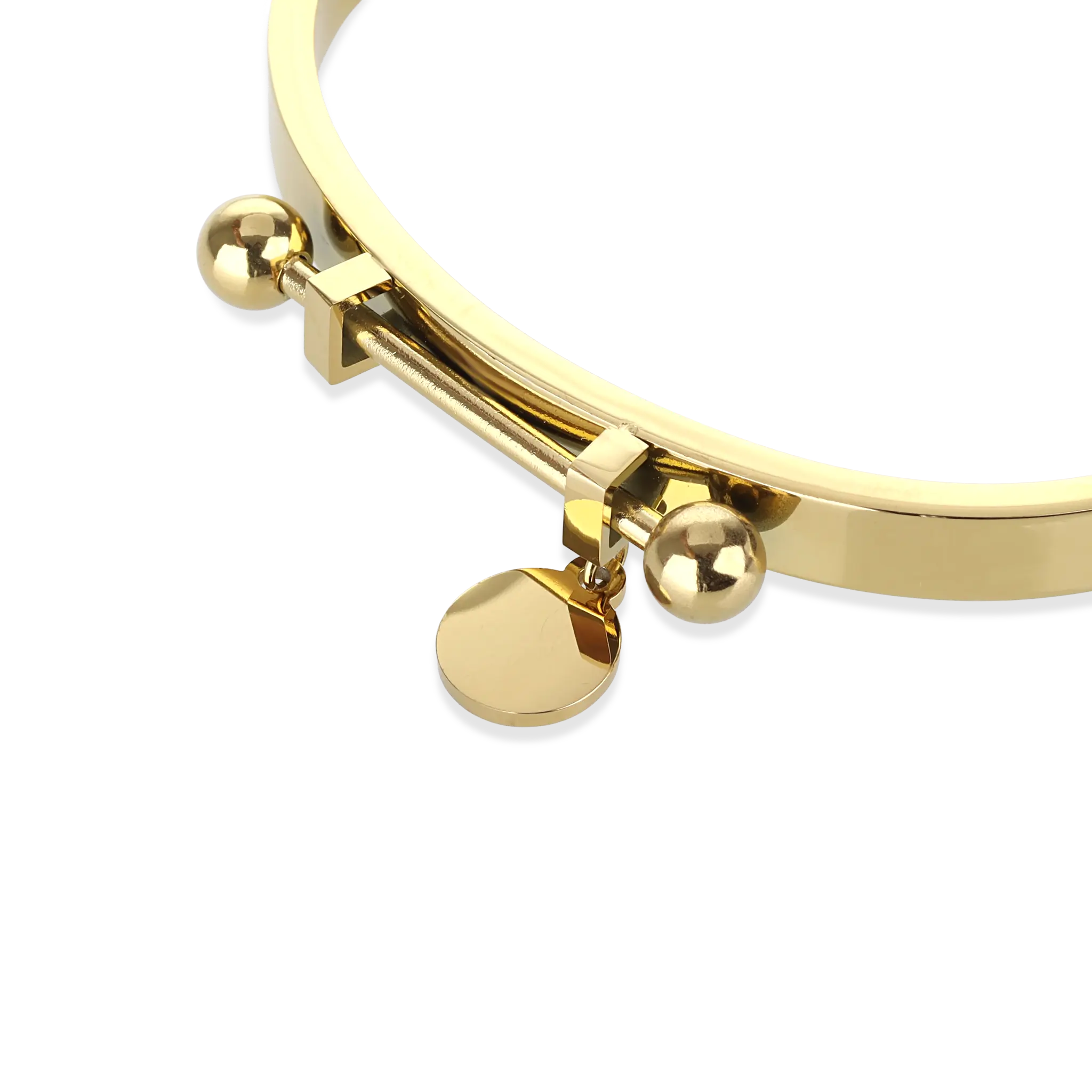 This bangle doesnt close properly or stay closed, the coin fell off the first day and the piece holding the bar in place somehow bent and is about to fall off. I would not purchase from this company again. Designs are so cute but absolute awful quality.