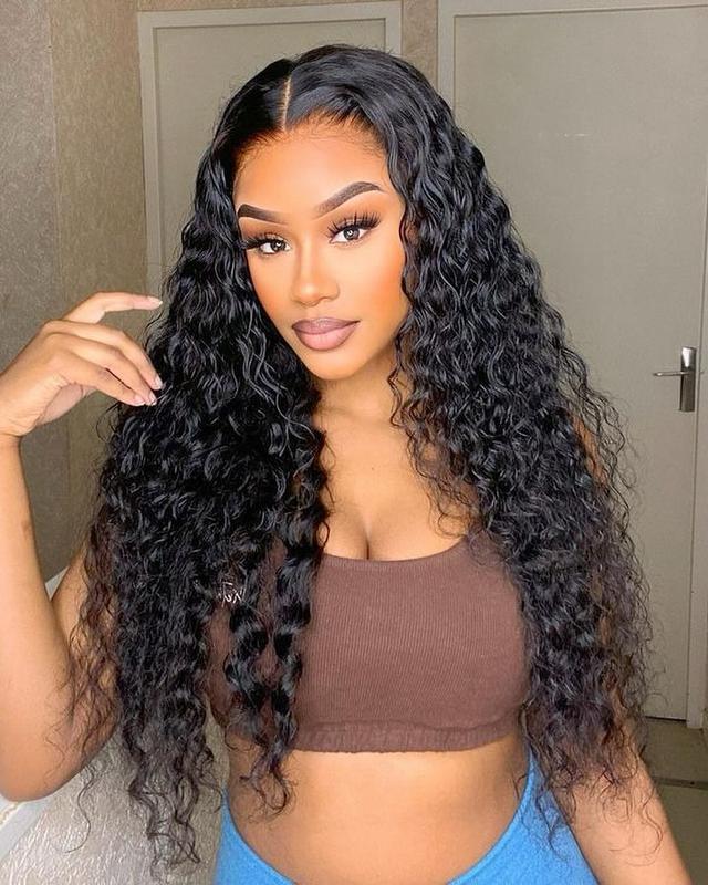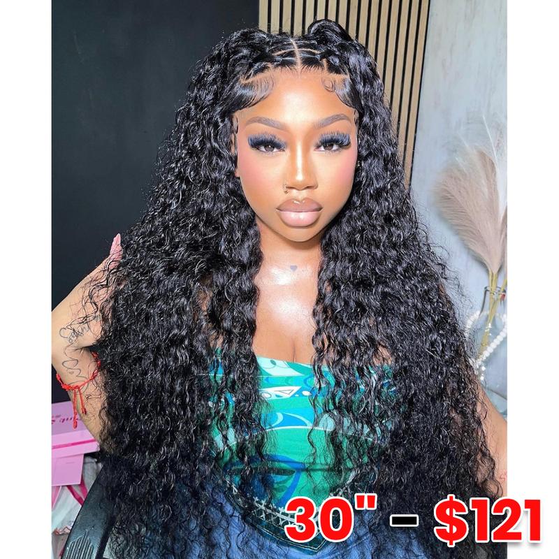 [30 inch hot] Water Wave 13x6 Lace Front Wigs Human Hair 180 Density 13x6 HD Full Lace Frontal Wigs Pre Plucked Wet and Wavy Glueless Deep Curly Human Hair Wigs for Women Natural Black TikTokShopBlackFriday