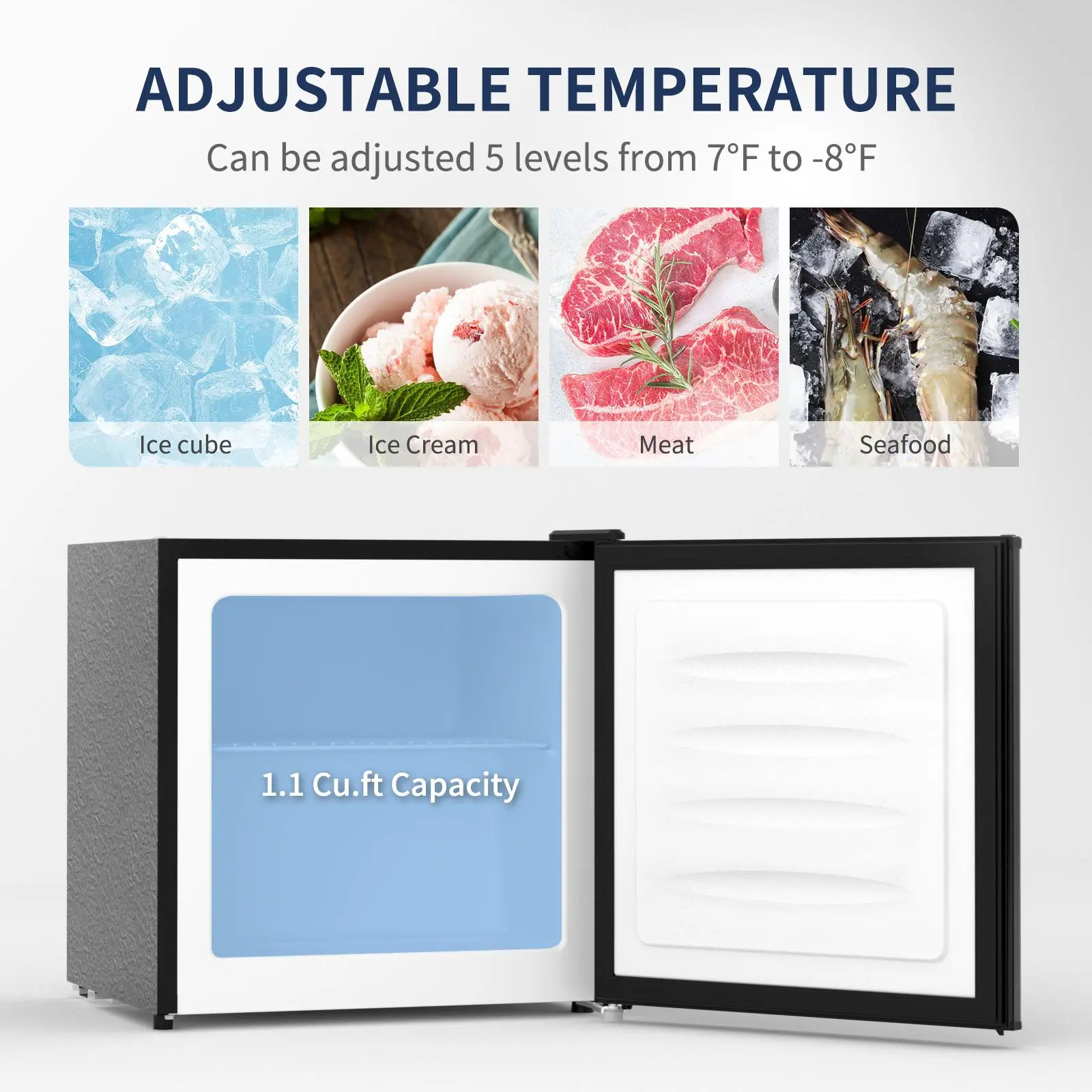 ·5-Level Temperature Control: Adjustable -8°F to 7°F; control dial at the rear for easy operation.