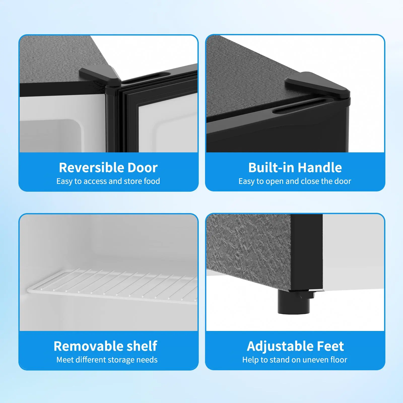 ·Space-Saving 1.1 Cu.Ft Capacity: 18.5"L×18"D×19.1"H; removable shelf; stores breast milk, snacks, ice cream. Ideal for 2–3 people, dorms & offices.