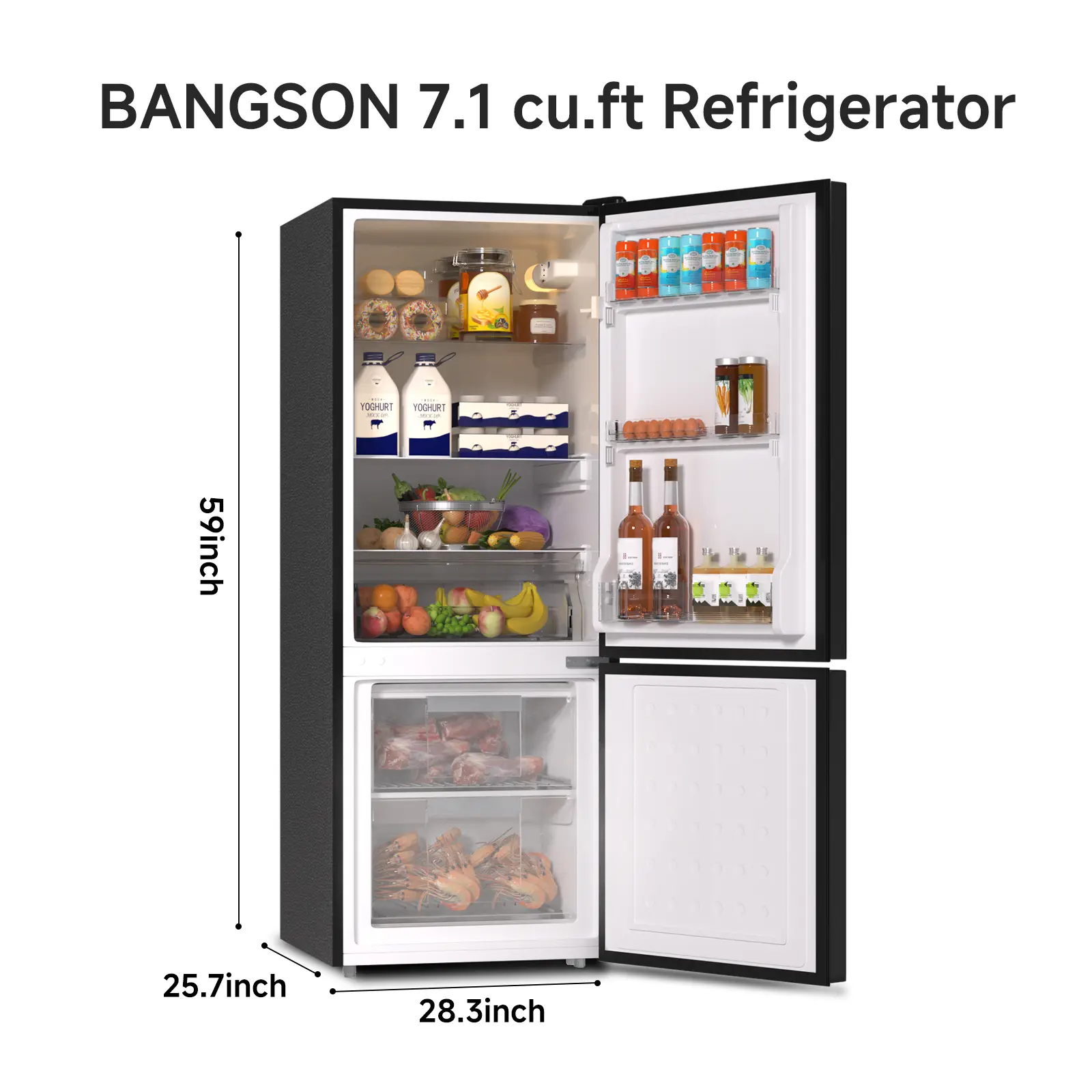 ·Space-Saving with Ample Capacity: 21.3"W×20.7"D×56"H compact size, featuring 1.65 Cu.Ft freezer + 5.45 Cu.Ft fridge (total 7.1 Cu.Ft). Ideal for apartments, bedrooms, offices, and kitchens.