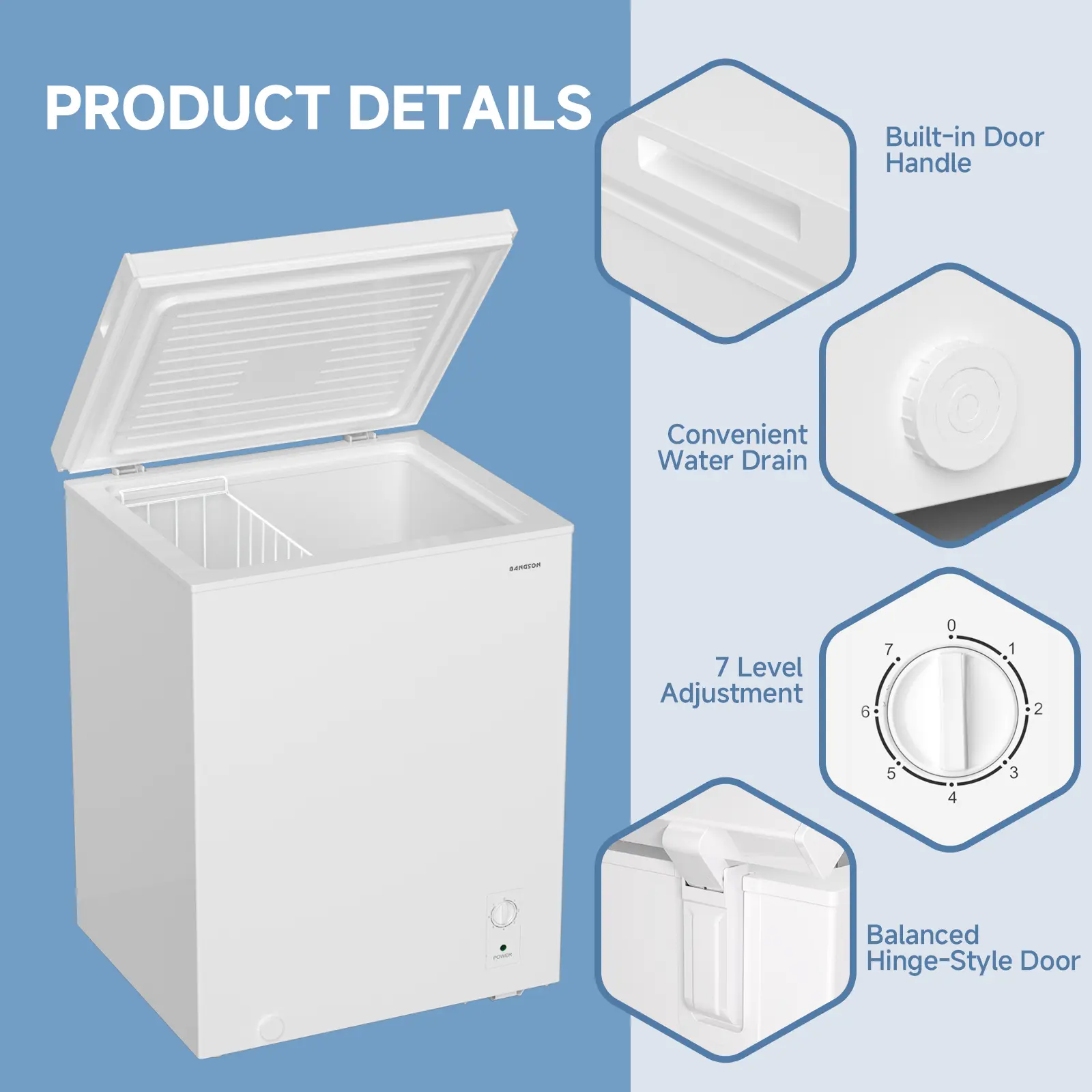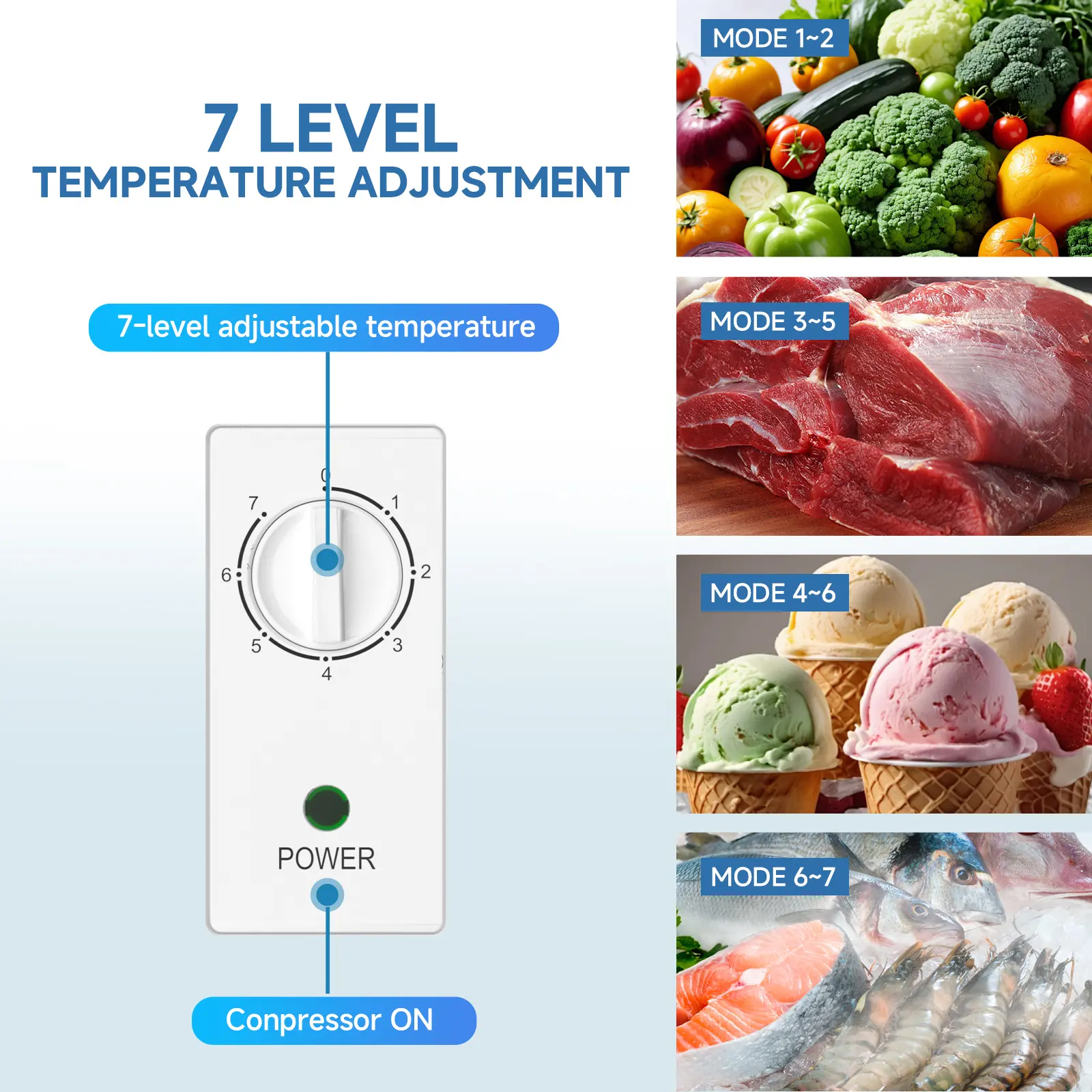 ·7-Level Temperature Control: Adjustable thermostat ranges from mild chill to deep freeze, locking in freshness and maintaining food quality efficiently.