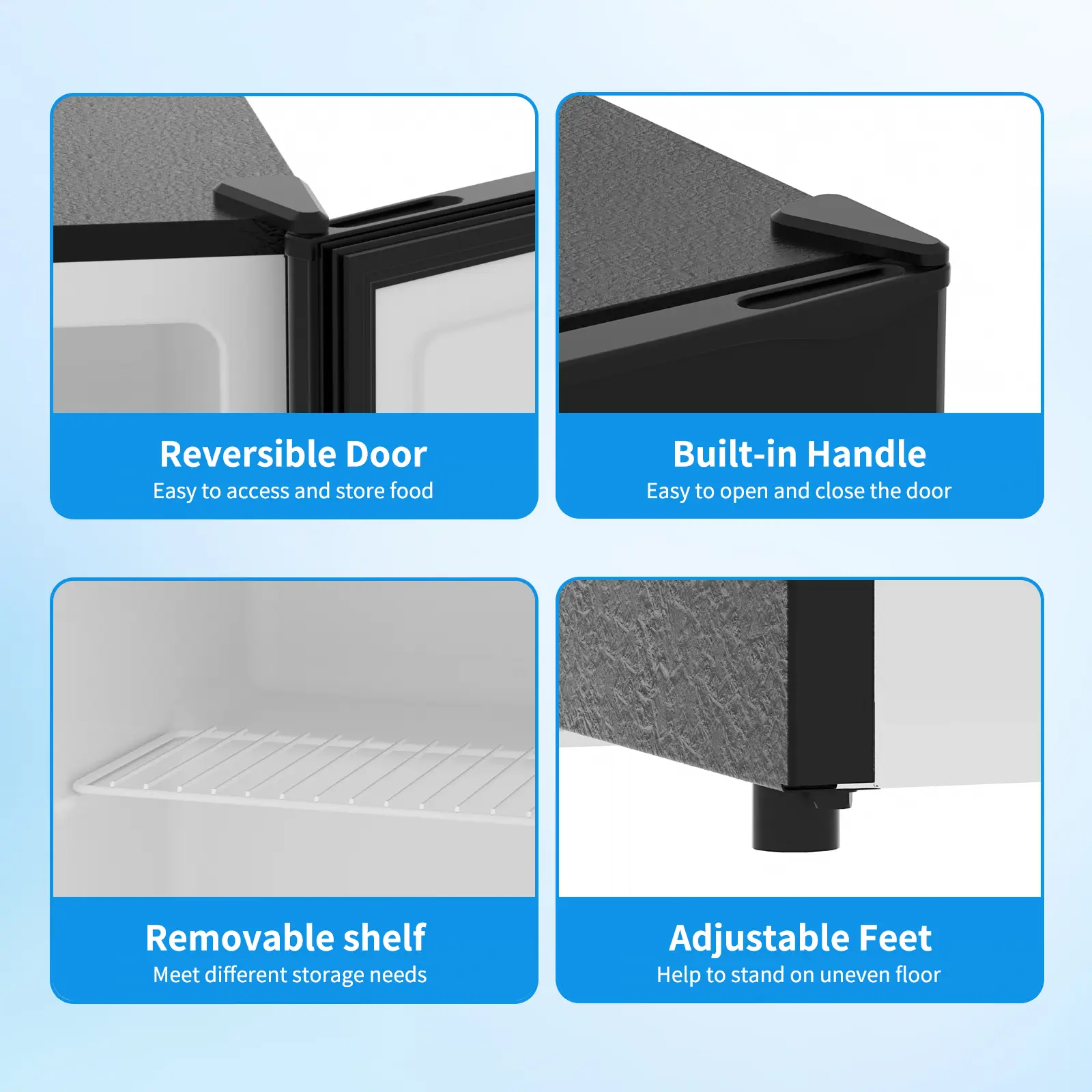 ·User-Friendly & Supported: Removable door seal for easy cleaning; includes ice tray and defrost tool. Prompt customer service for inquiries.