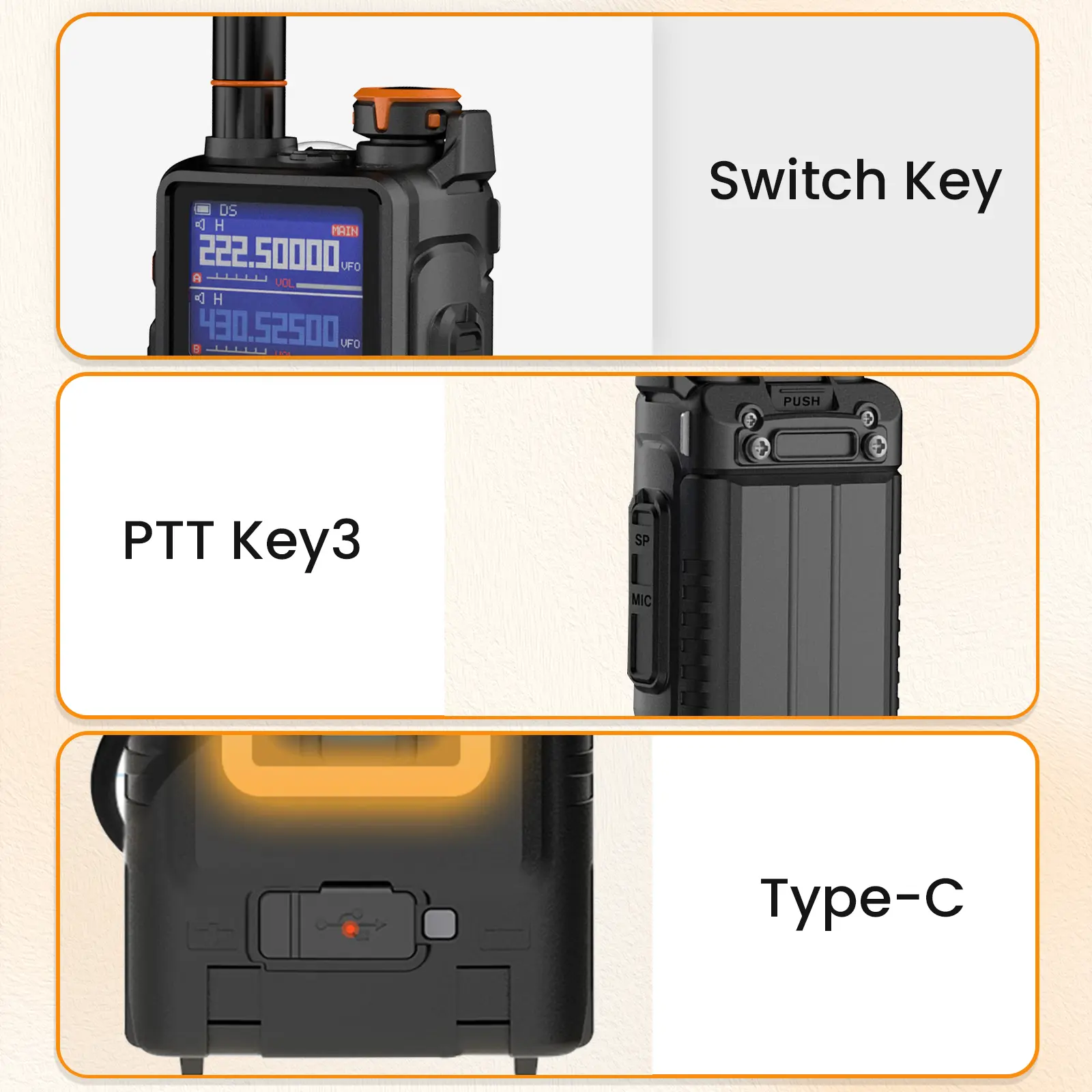 ·Upgraded from UV-5R:UVK5PLUS is an upgraded version of UV-5R, with high/medium/low power switching. Up to 999 channels, 1.77-inch color screen, stopwatch timer, FM radio, LED flashlight, stopwatch function, DTMF, VOX, alarm function, large capacity lithium-ion battery and other functions.
