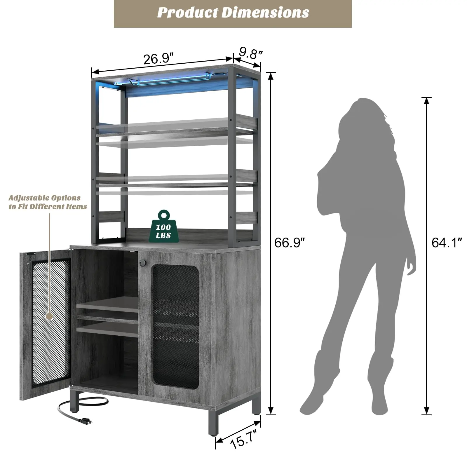 ·【Liquor Cabinet with Cool LED RGB Light】This liquor cabinet comes with RGB LED light for colorful, and Over 60000 colors and multiple flashing modes for you to choose. LED lights built-in music sync function can change the light's color with the rhythm of the sound and music.