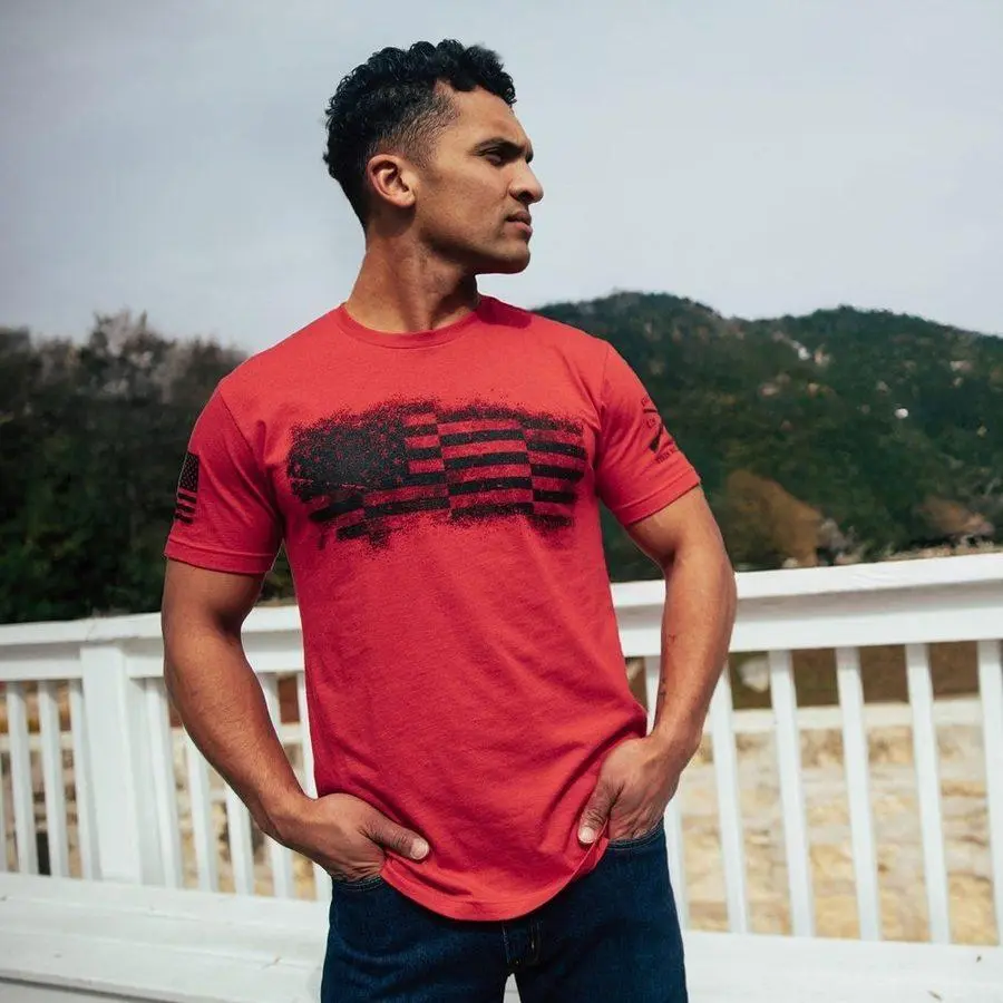 For the fearless patriots who raise the standard and never back down—this one's for you. The Bar Flag T-Shirt in Red is built for those who carry pride in every step and live to keep America strong. With a clean, powerful design and a bold flag graphic that speaks louder than wordsOur Patriotic Tees are crafted with the following details:• Unisex for a classic fit for men and a relaxed "Boyfriend" fit for women• 60% Combed Ring-Spun Cotton / 40% Polyester• Ultra-comfortable and soft for all-day comfort• Tagless, itch-free design• Ribbed Collar that won't lose its shape• Double Needle Stitching for Durability• Machine Wash Cold• Tumble Dry Low• Designed in the USA